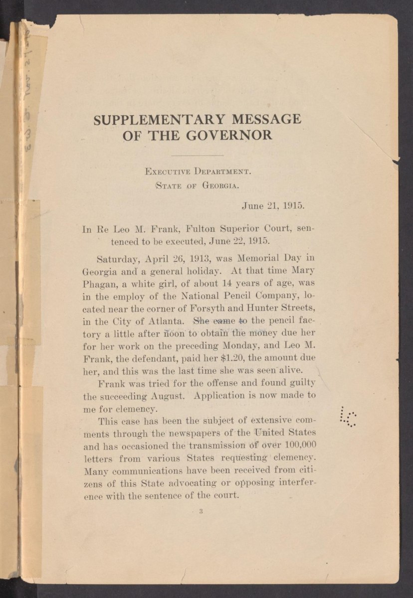 Frank was tried for the offense and found guilty the succeeding August. Application is now made to me for clemency.