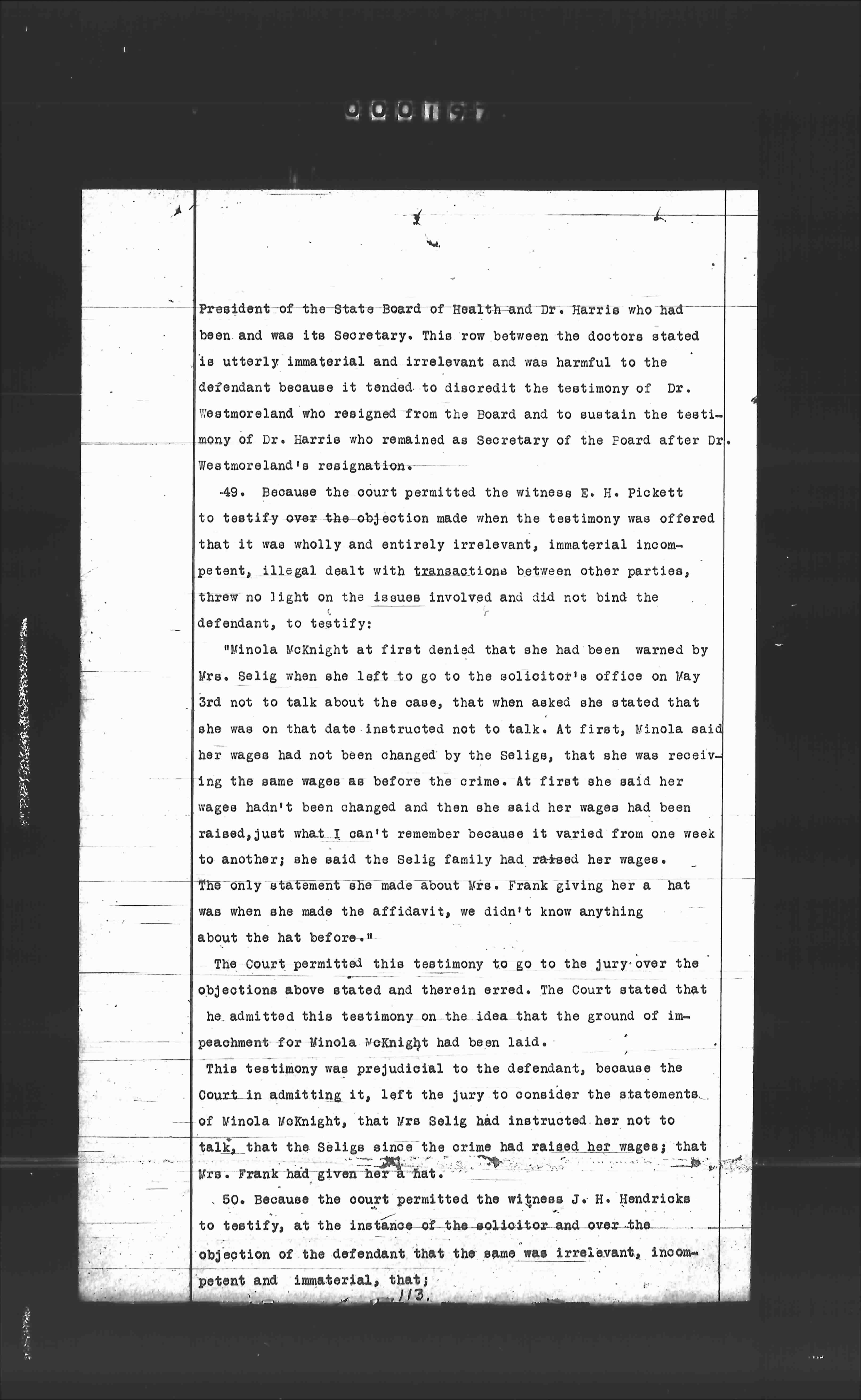 - 50. Because the court permitted the witness J. H. Hendricks