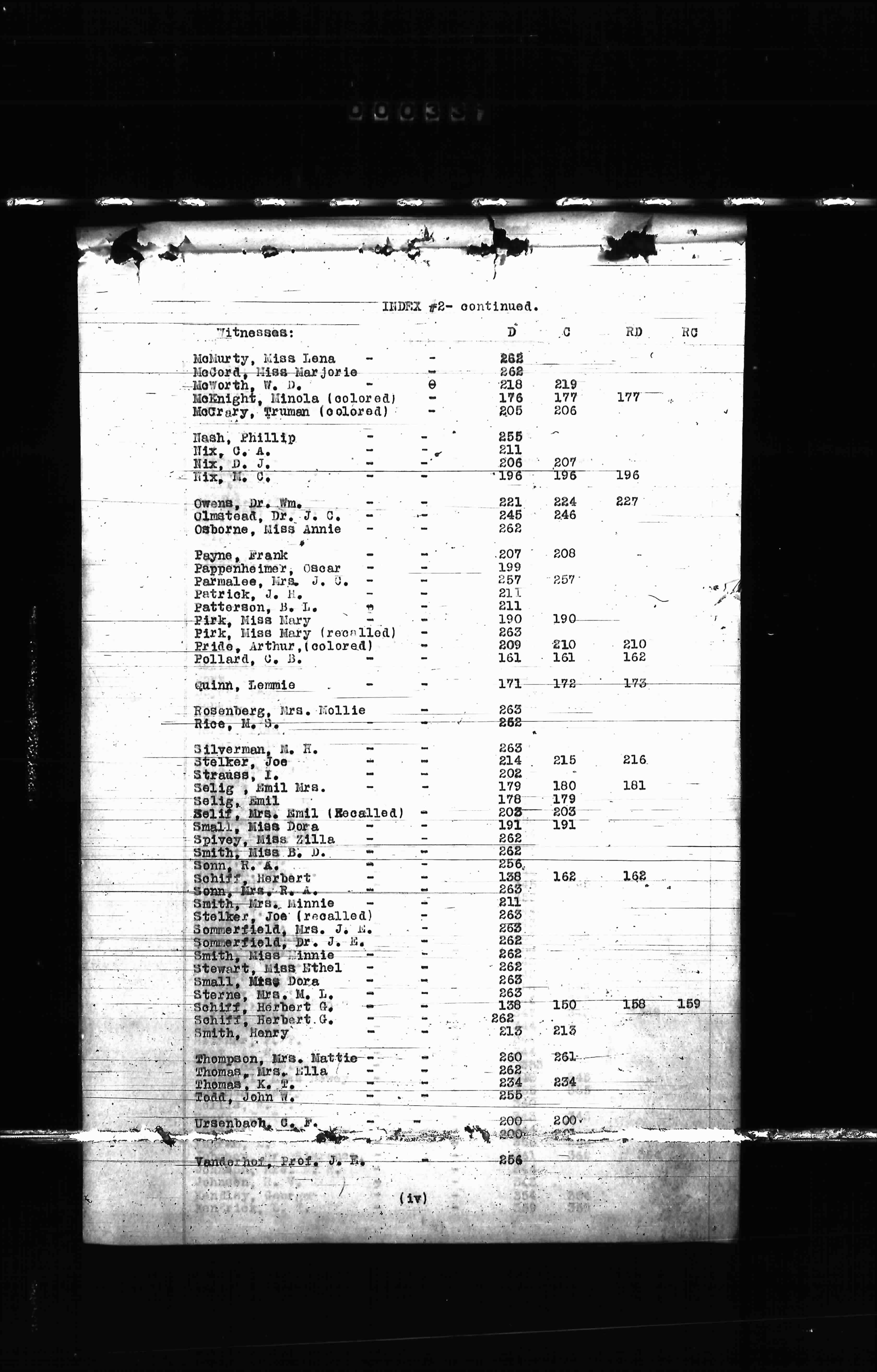 Smith, Mrs. Minnie (recalled) 211