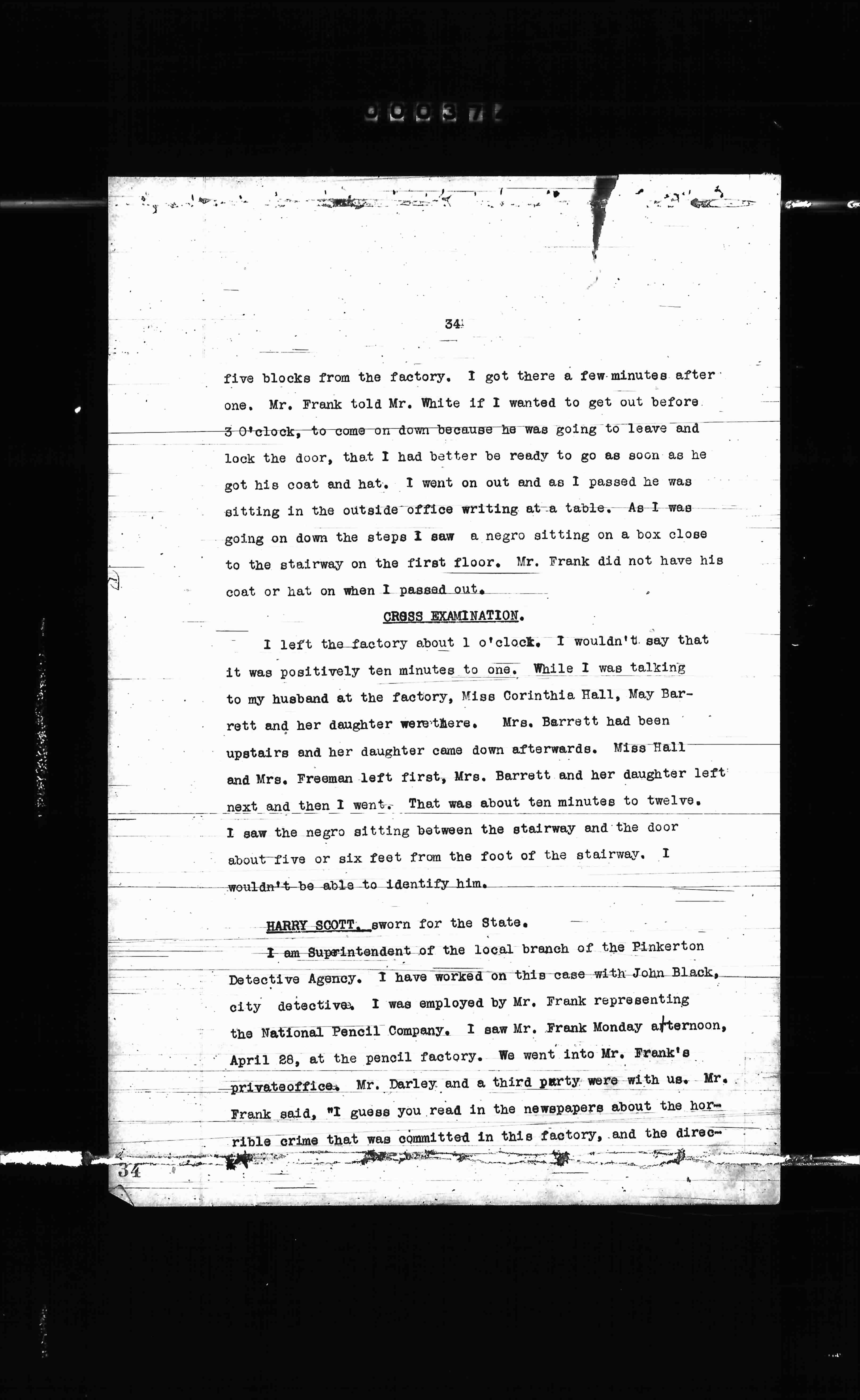 I am Superintendent of the local branch of the Pinkerton Detective Agency. I have worked on this case with John Black, city detective. I was employed by Mr. Frank representing the National Pencil Company. I saw Mr. Frank Monday afternoon, April 28, at the pencil factory. We went into Mr. Frank's private office. Mr. Darley, and a third party were with us. Mr. Frank said, "I guess you read in the newspapers about the horrible crime that was committed in this factory and the direc-