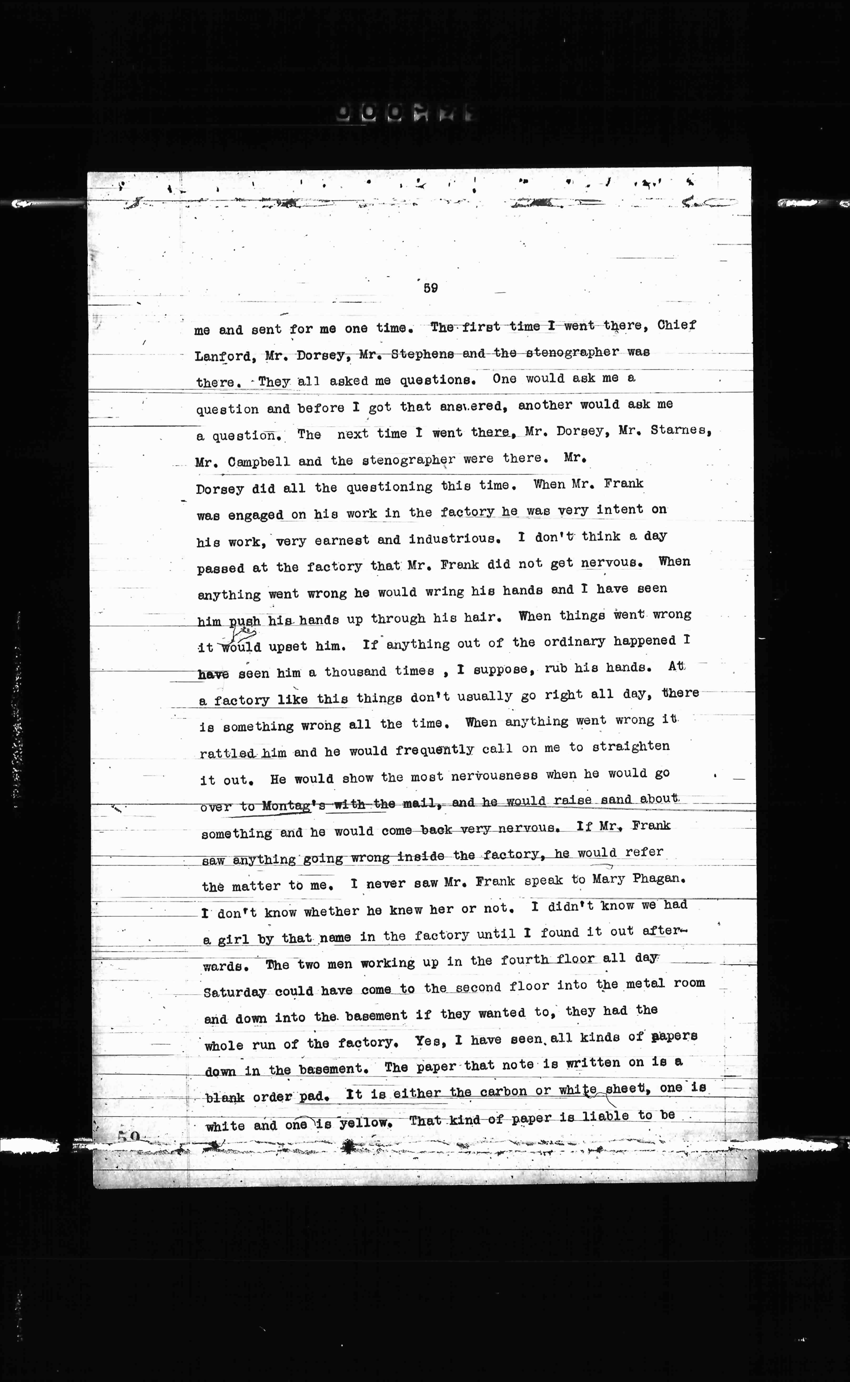 the matter to me. I never saw Mr. Frank speak to Mary Phagan.