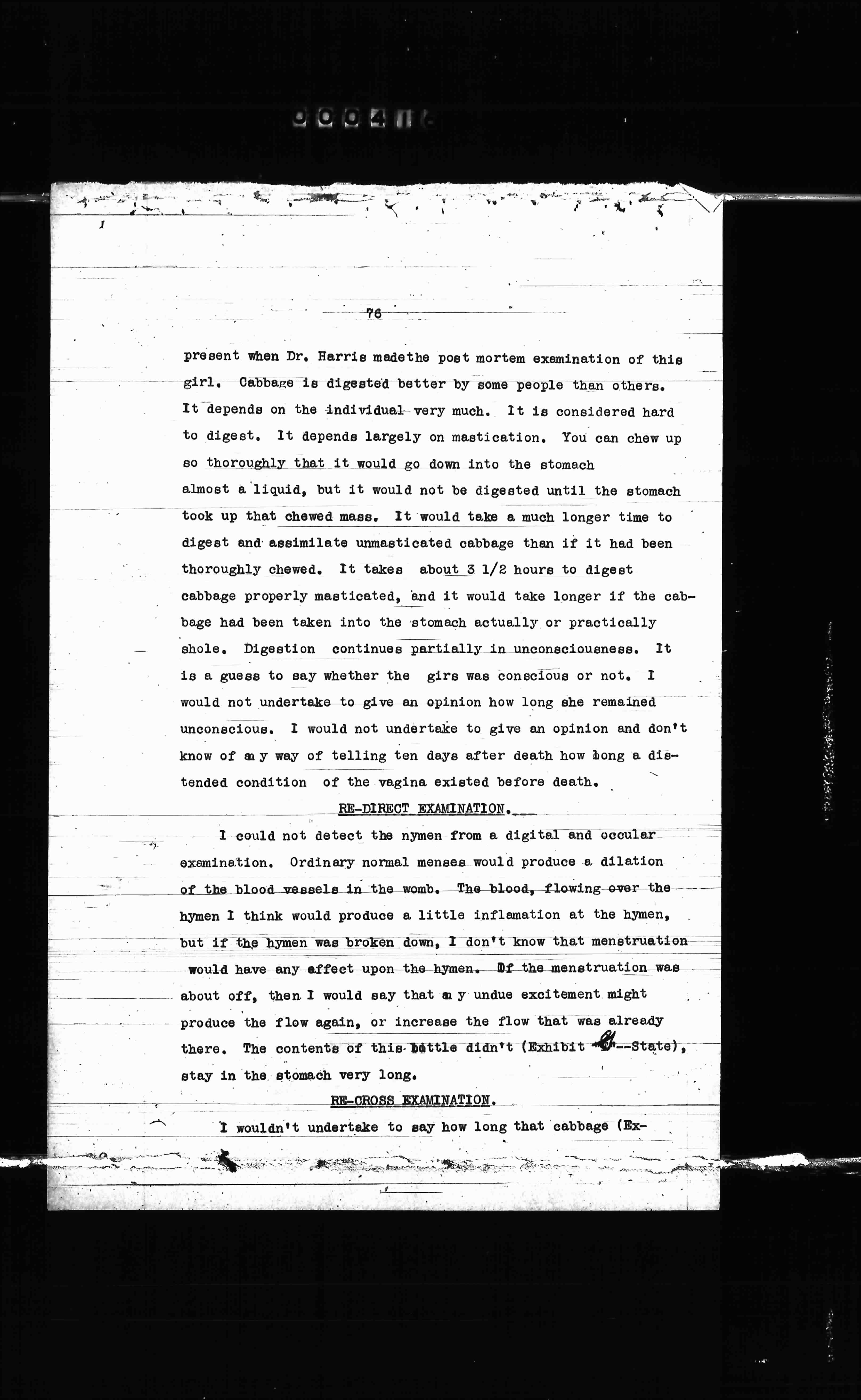 examination. Ordinary normal menses would produce a dilation