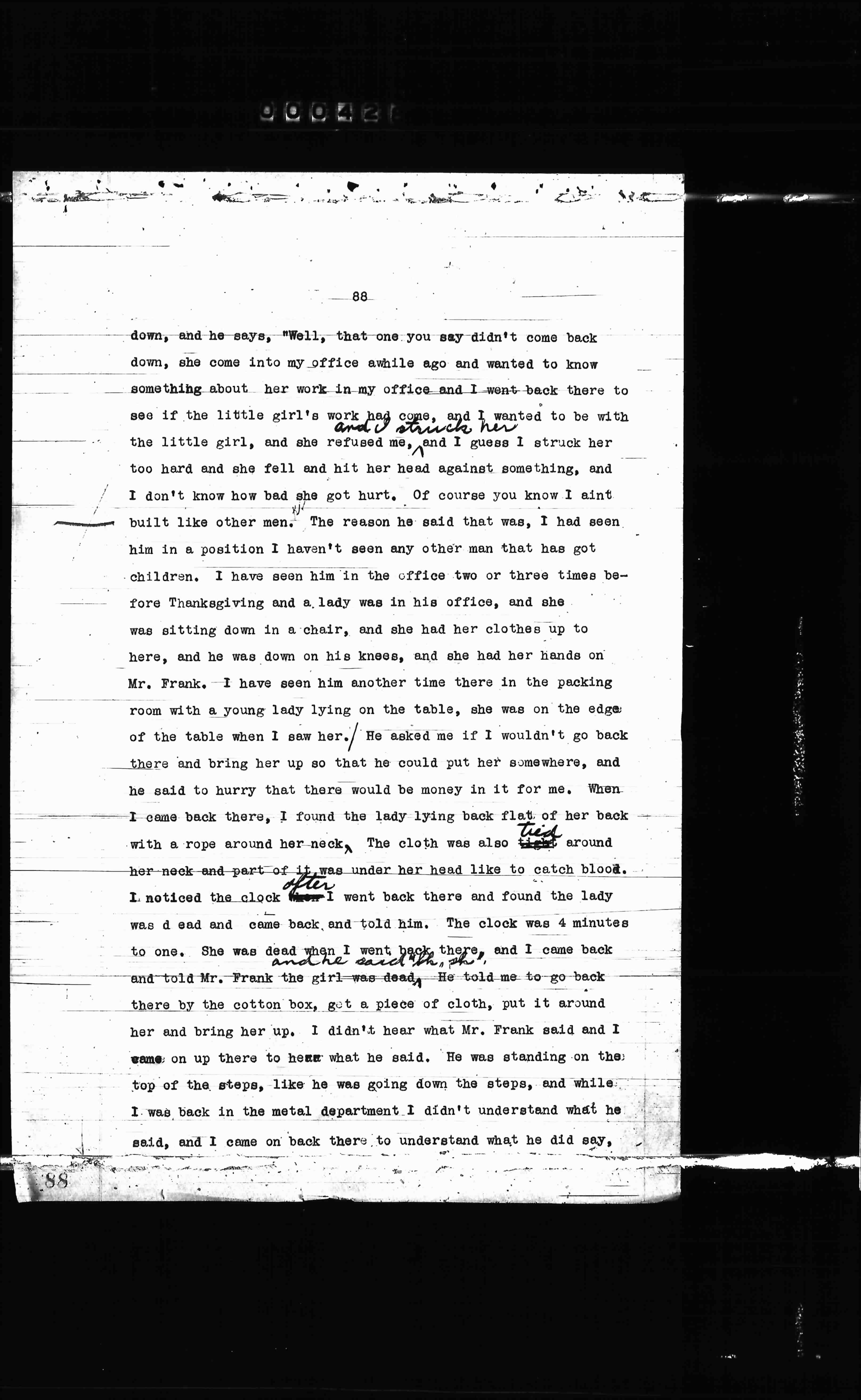 and told Mr. Frank and he said to go back there by the cotton box, get a piece of cloth, put it around