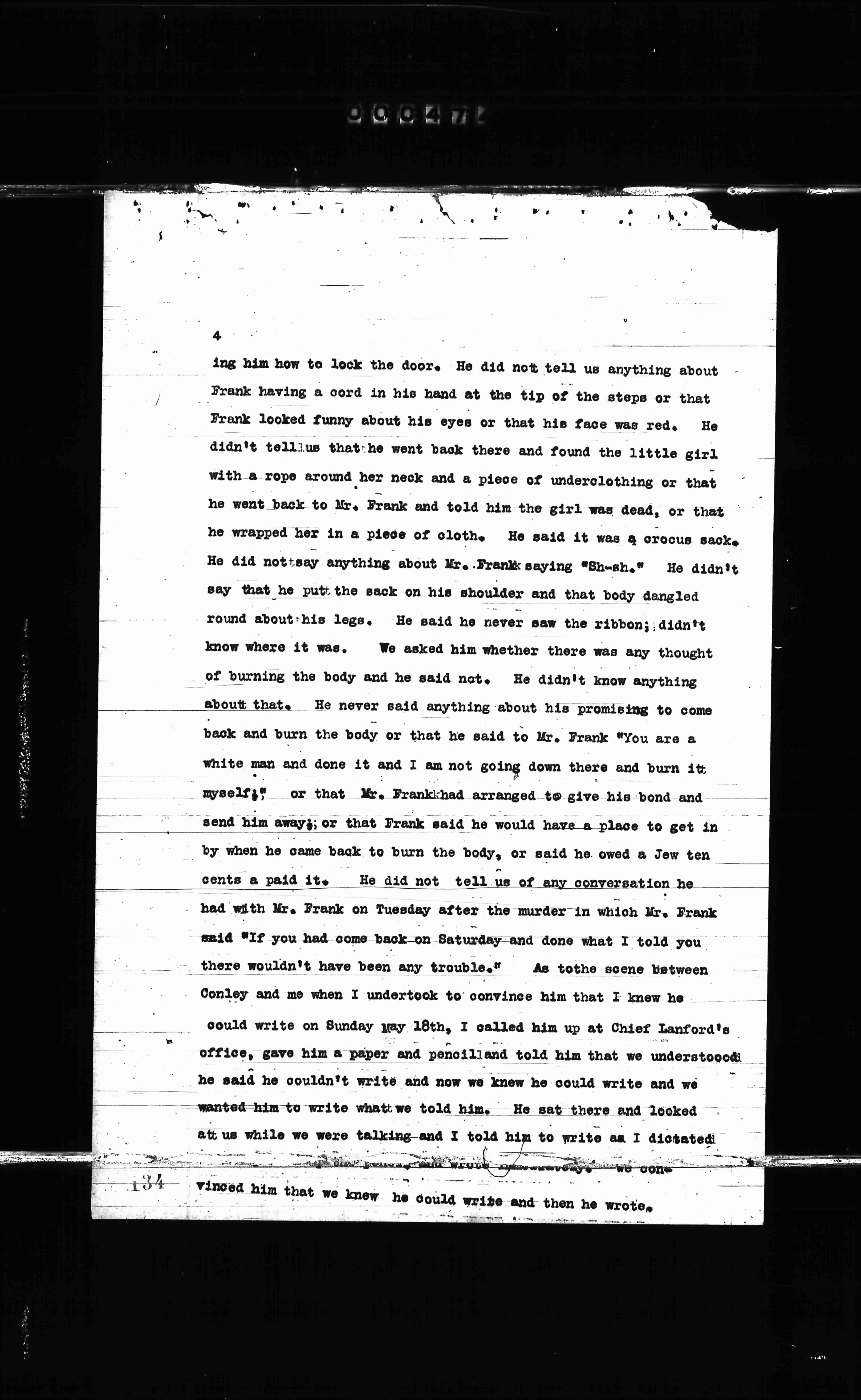 back and burn the body or that he said to Mr. Frank "You are a