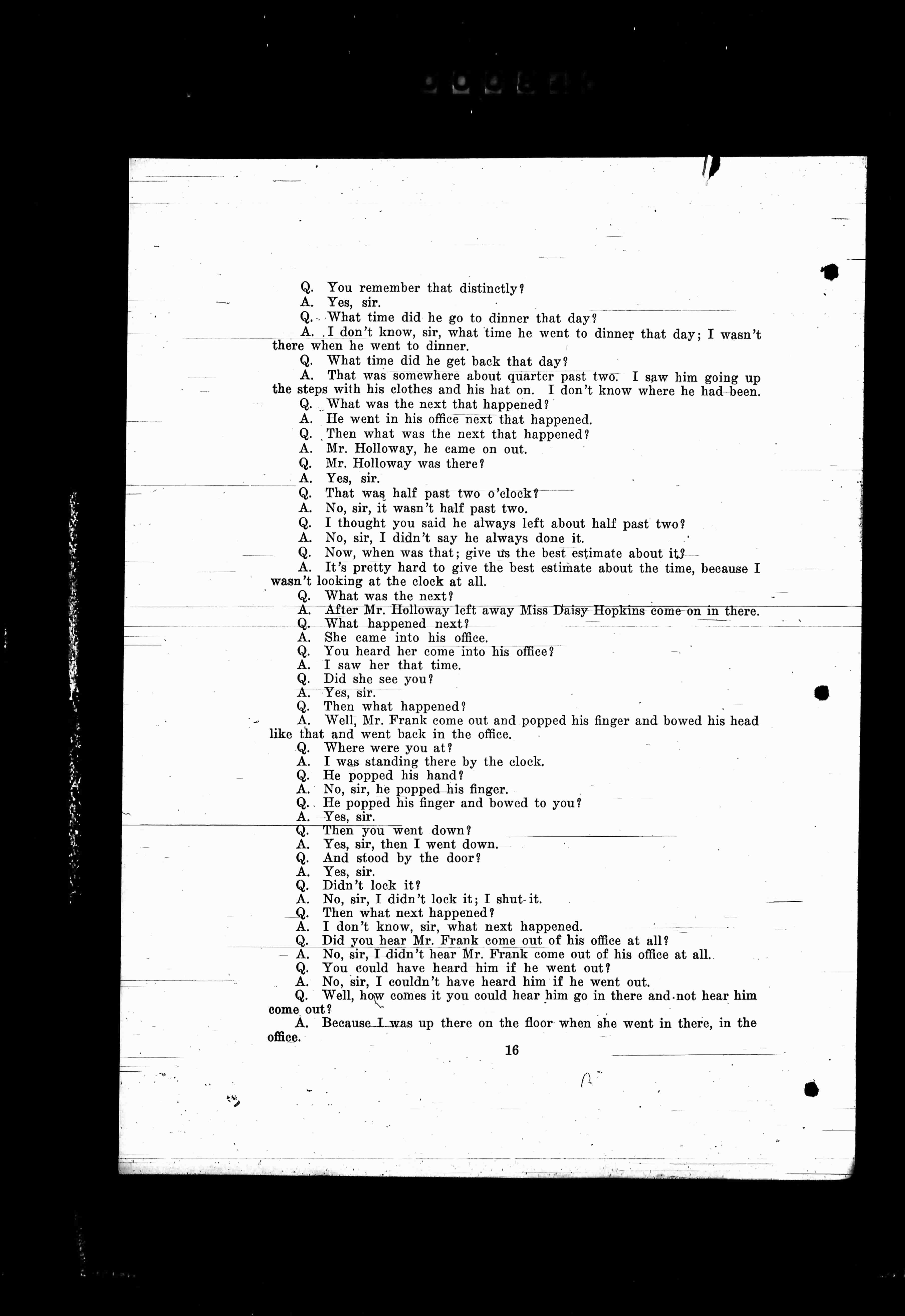 A. After Mr. Holloway left away Miss Daisy Hopkins come on in there.