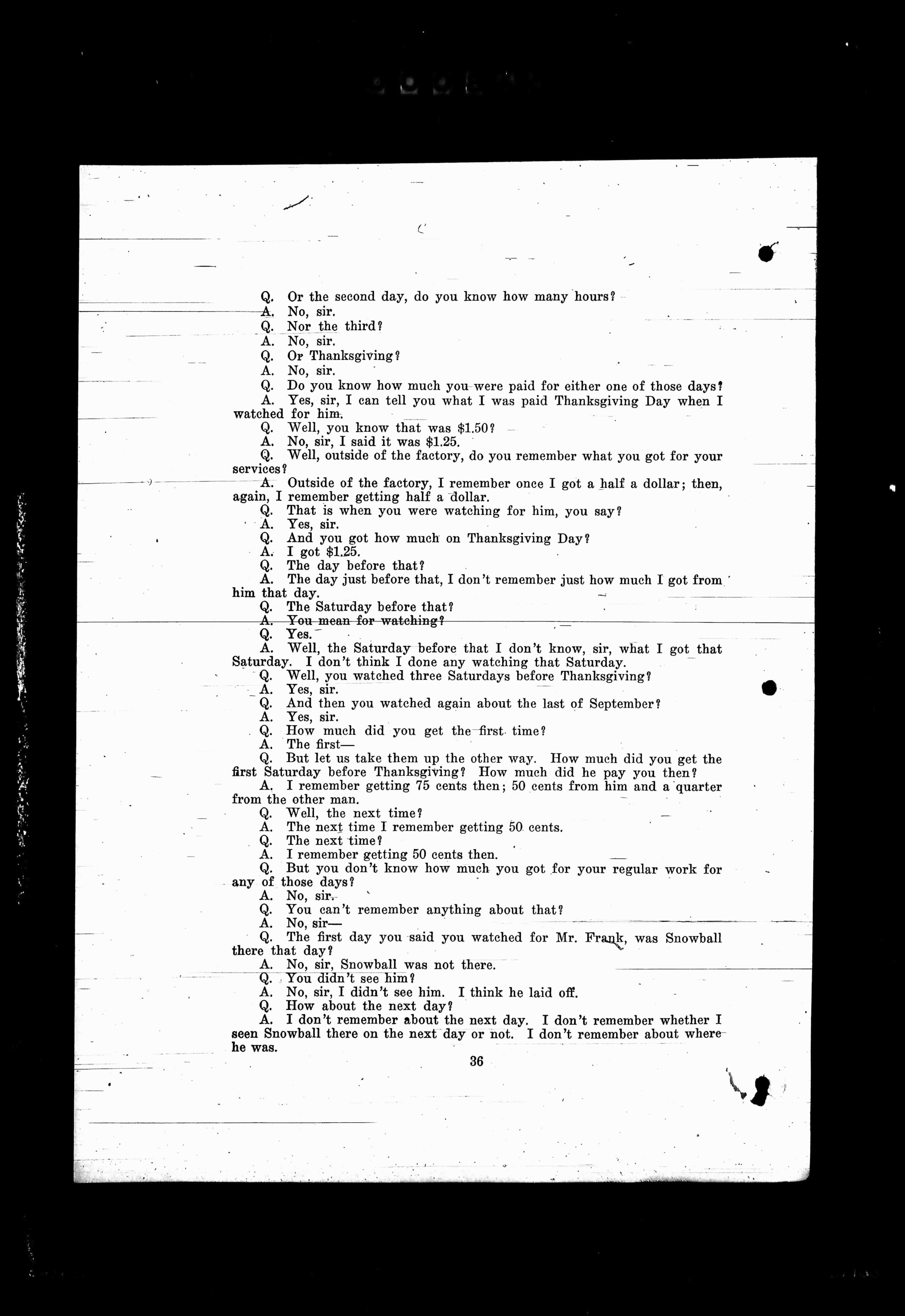 Q. The first day you said you watched for Mr. Frank, was Snowball there that day?