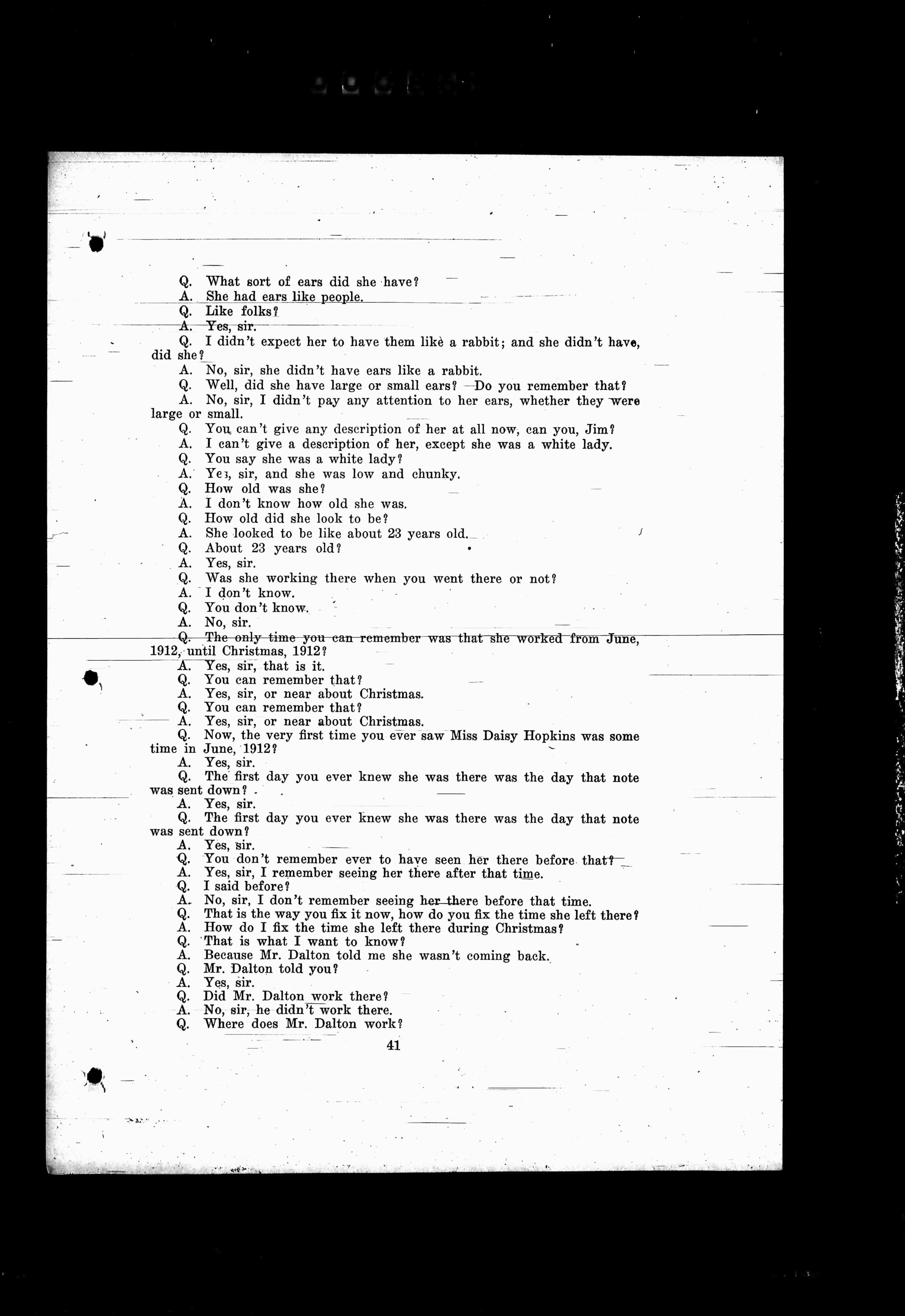 Q. Now, the very first time you ever saw Miss Daisy Hopkins was some