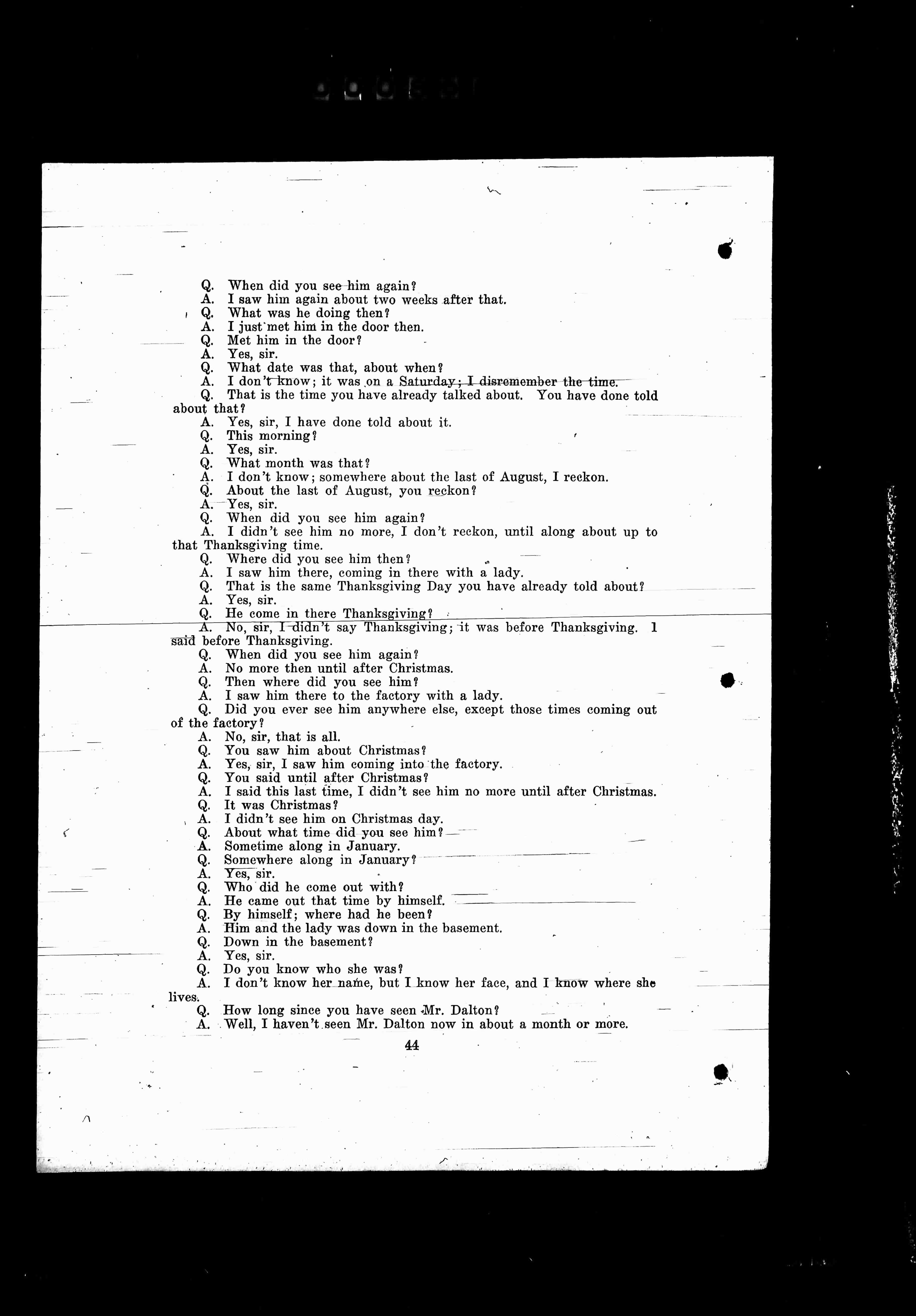 A. Well, I haven't seen Mr. Dalton now in about a month or more.
