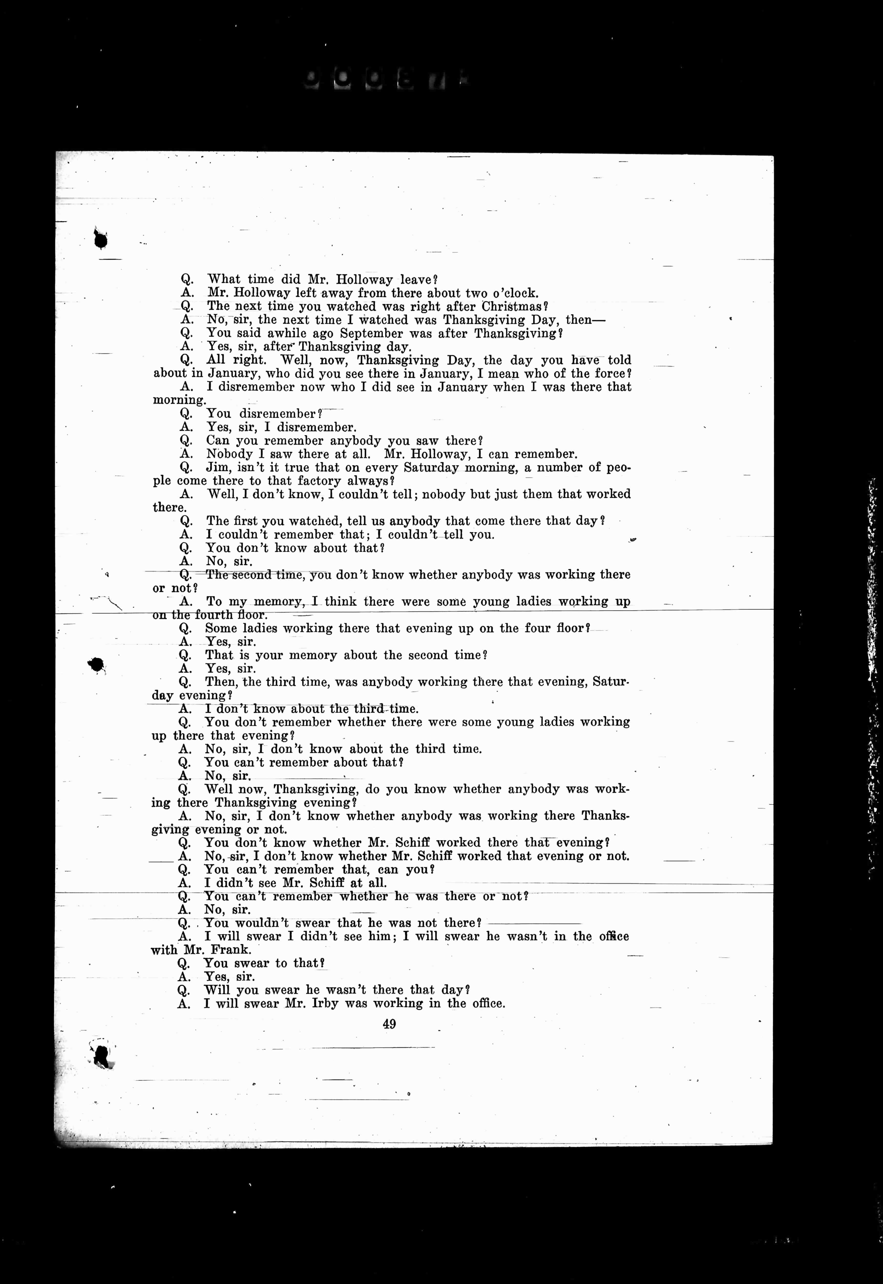 A. I will swear I didn't see him; I will swear he wasn't in the office with Mr. Frank.