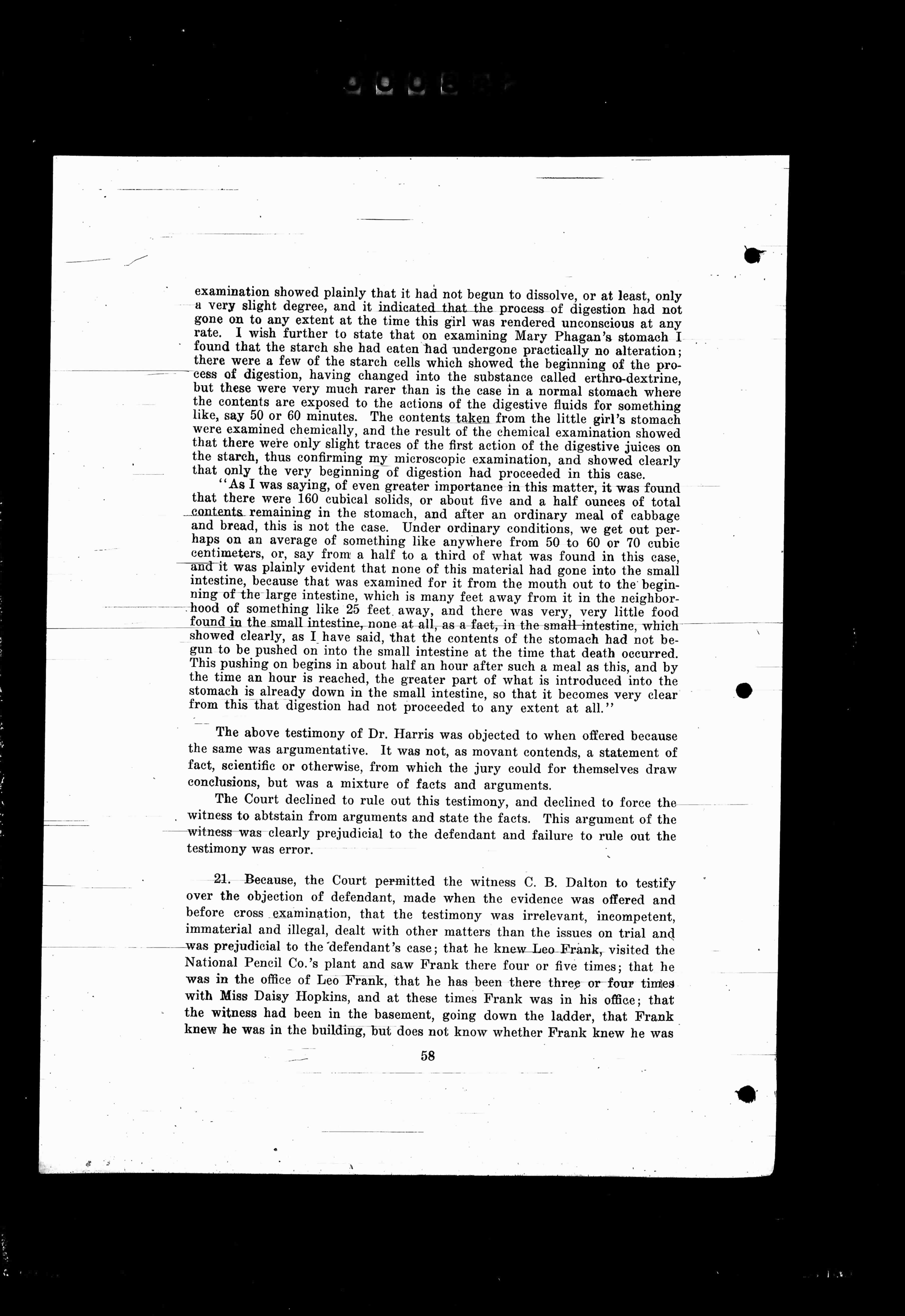 rate. I wish further to state that on examination Mary Phagan's stomach I