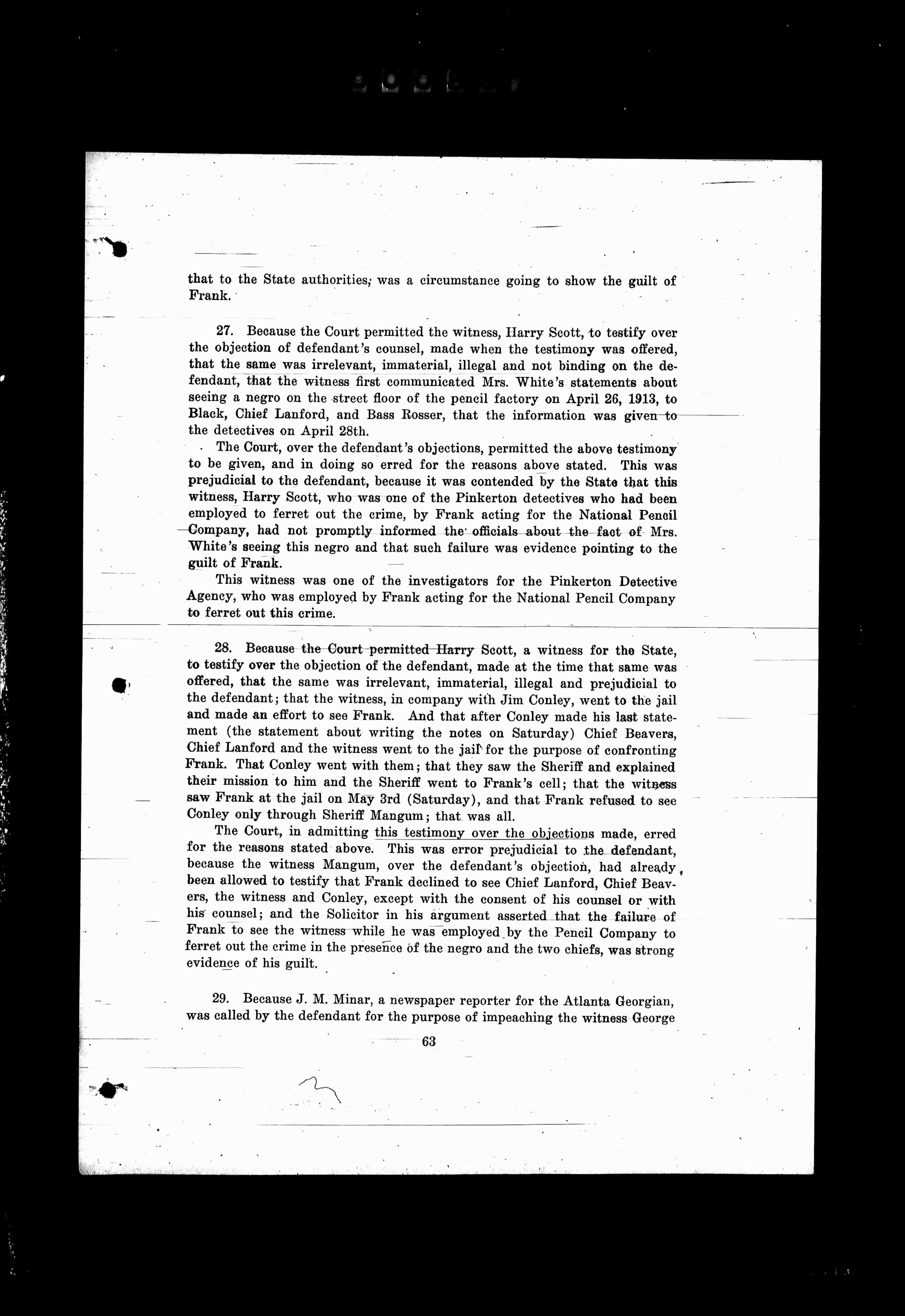 27. Because the Court permitted the witness Harry Scott, to testify over