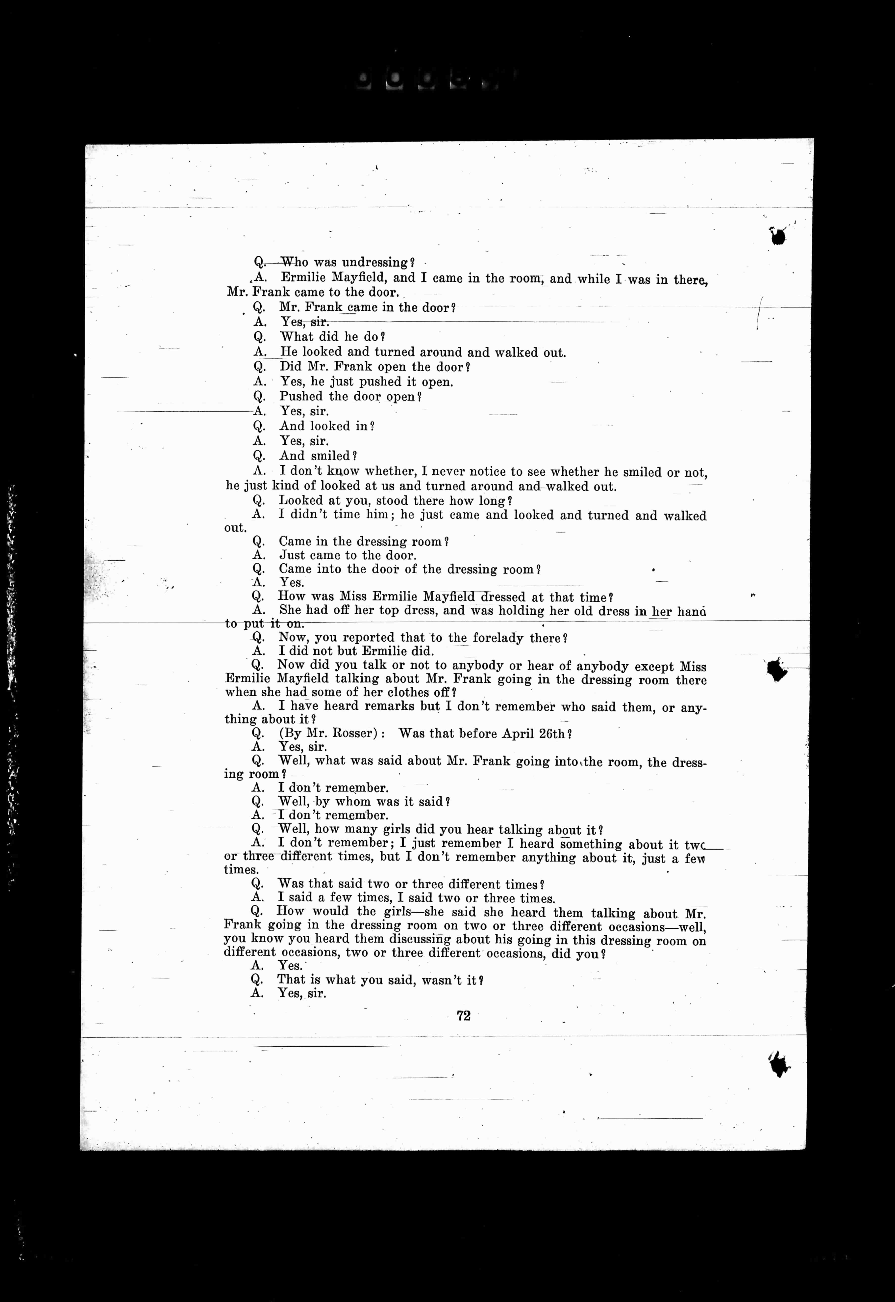 Q. Well, what was said about Mr. Frank going into the room, the dress-