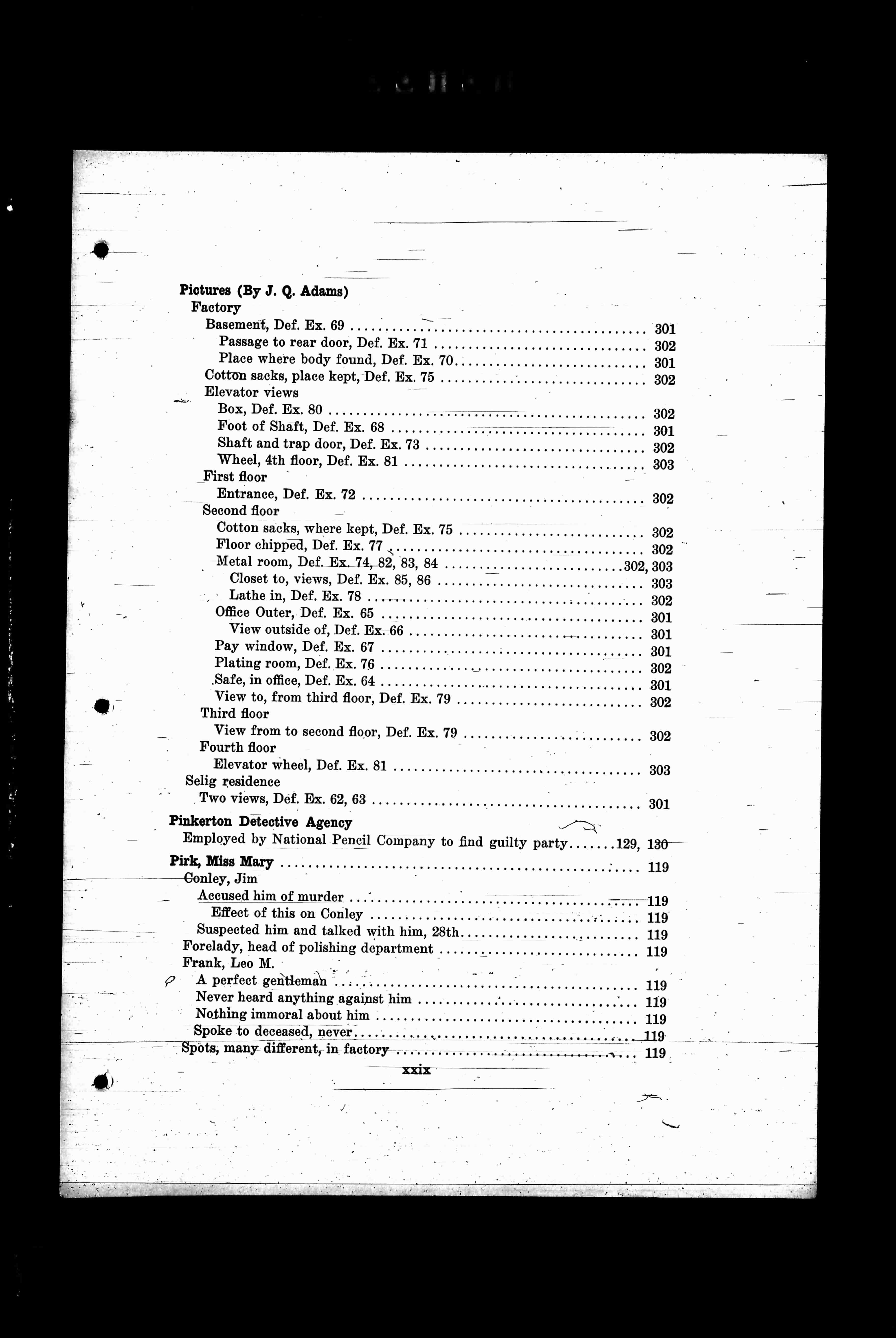Employed by National Pencil Company to find guilty party, Pages 129, 130.