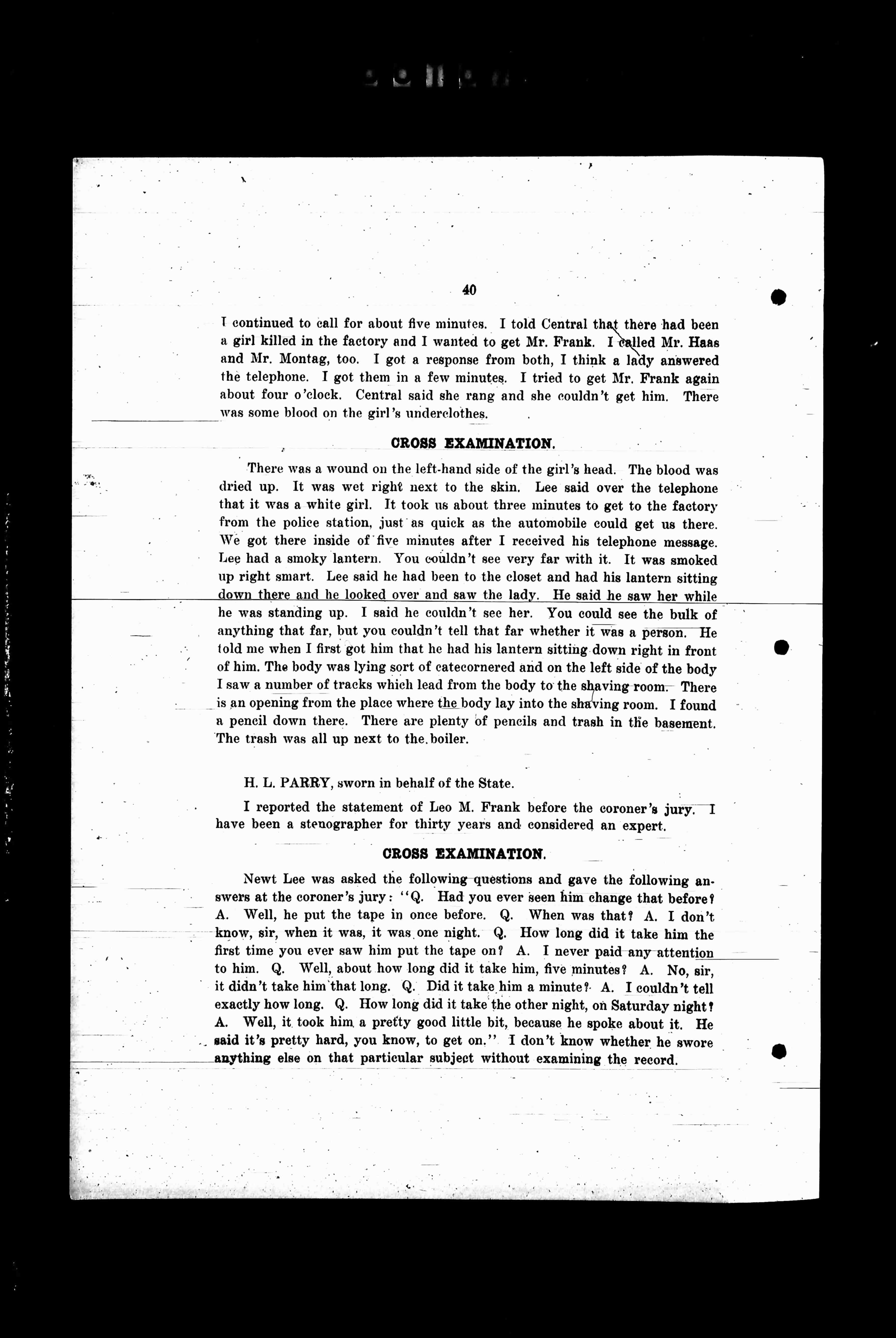 I reported the statement of Lee M. Frank before the coroner's jury. I