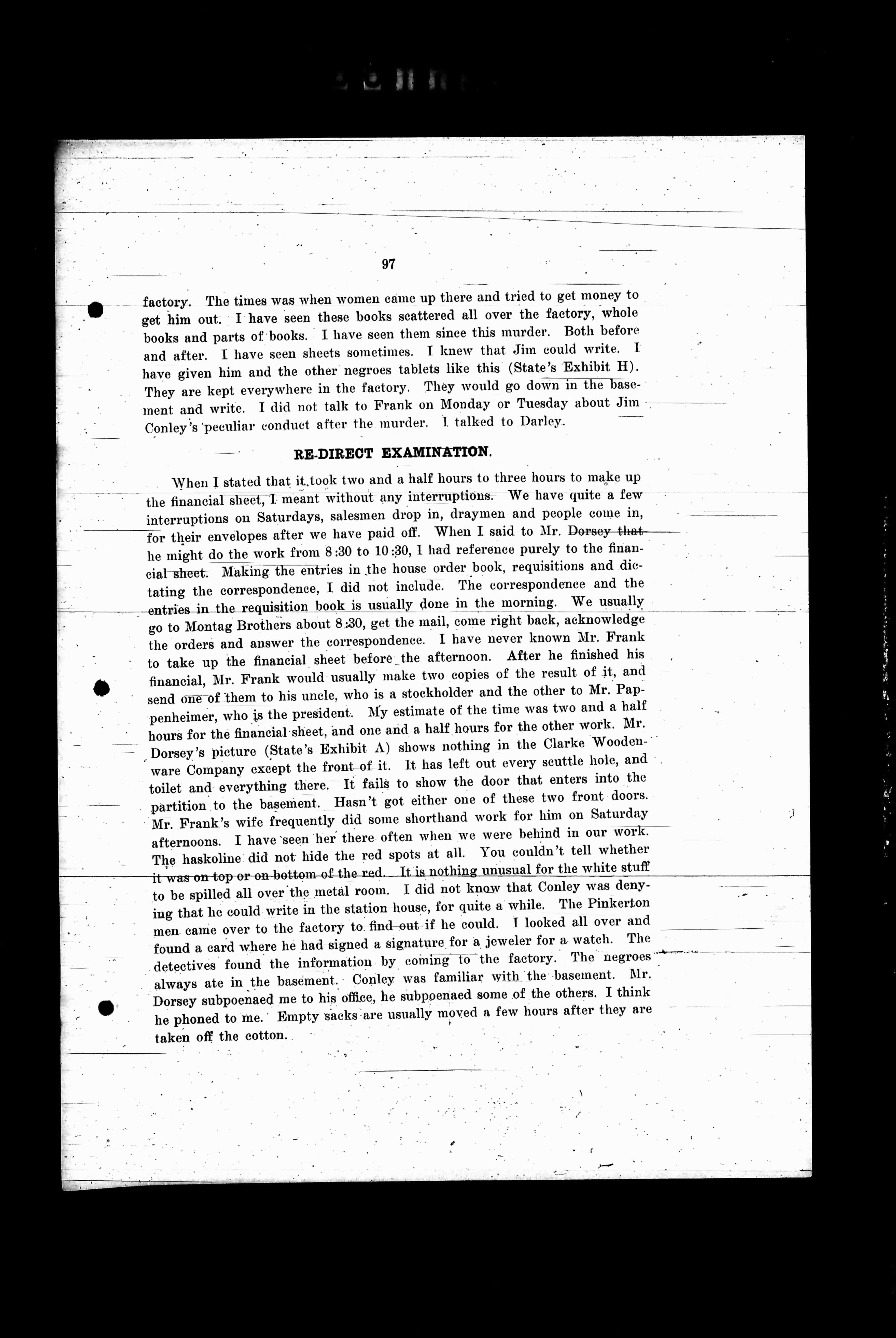 Conley's peculiar conduct after the murder. I talked to Darley.