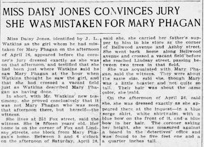 Miss Daisy Jones, identified by J. L. Watkins as the girl whom he had mistaken for Mary Phagan on the