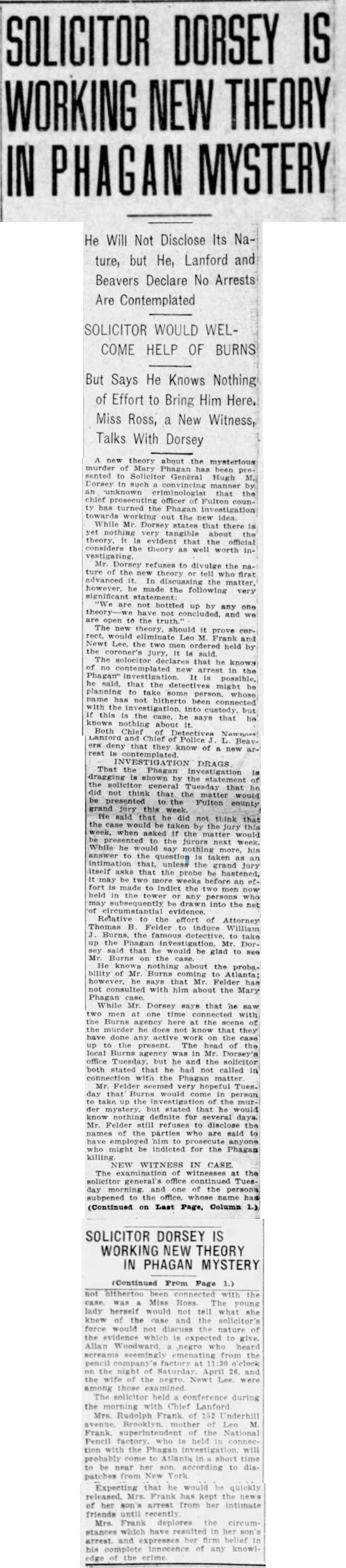 - 0027 Friday, 2nd May 1913 Solicitor Dorsey is Making Independent Probe of Phagan Case, The Atlanta Journal [Last Updated On: December 19th, 2023] [Originally Added On: December 1st, 2023]