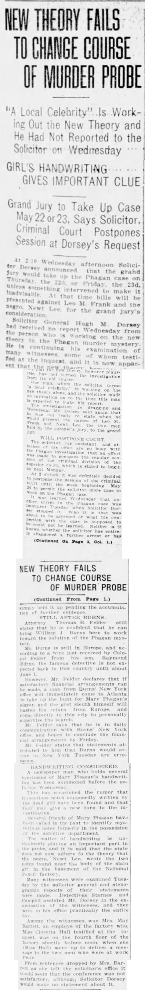 - 0058 Tuesday, 13th May 1913 Solicitor Dorsey is Working New Theory in Phagan Mystery [Last Updated On: December 28th, 2023] [Originally Added On: December 1st, 2023]
