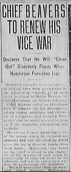Renewed crusades to clean out vice in Atlanta have been precipitated by the publication Tuesday of an open letter to Chief of Police Beavers by Carl Hutcheson, an Atlanta attorney.