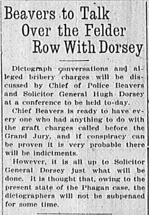 Dictograph conversations and alleged bribery charges will be discussed by Chief of Police Beavers and Solicitor General Hugh Dorsey at a conference to be held to-day.