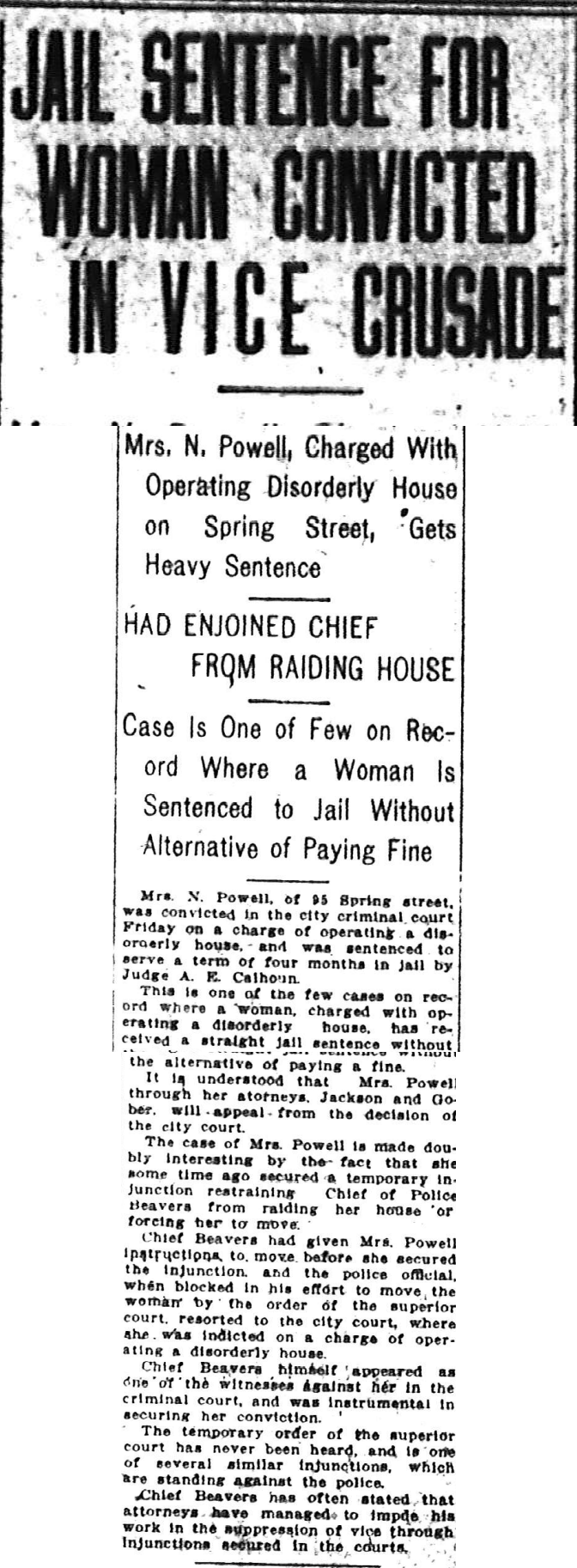 Mrs. N. Powell, Charged With Operating Disorderly House on Spring Street, Gets Heavy Sentence