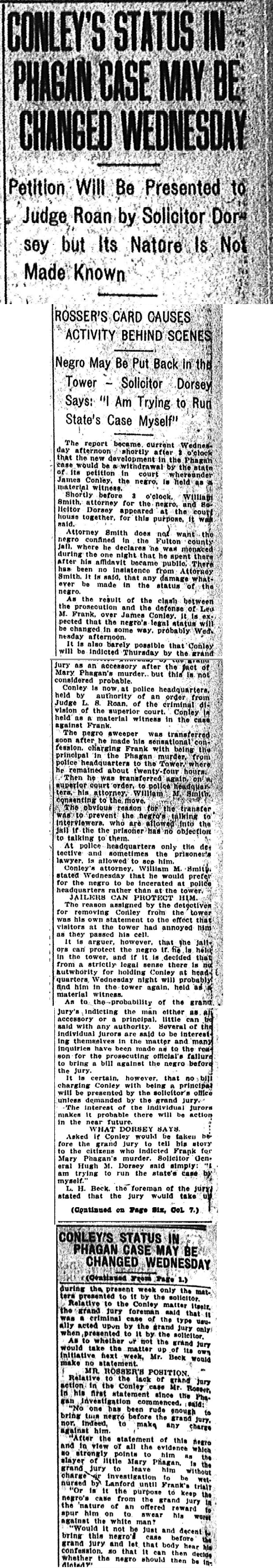 Wednesday, 11th June 1913 Conley’s Status in Phagan Case May Be Changed Wednesday PDF