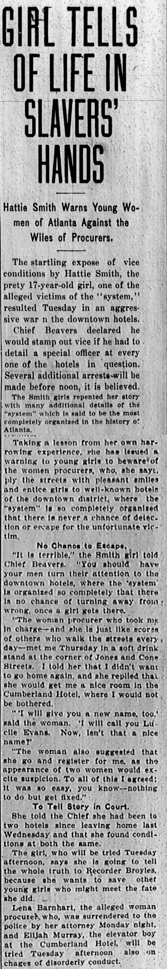 Hattie Smith Warns Young Women of Atlanta Against the Wiles of Procurers.
