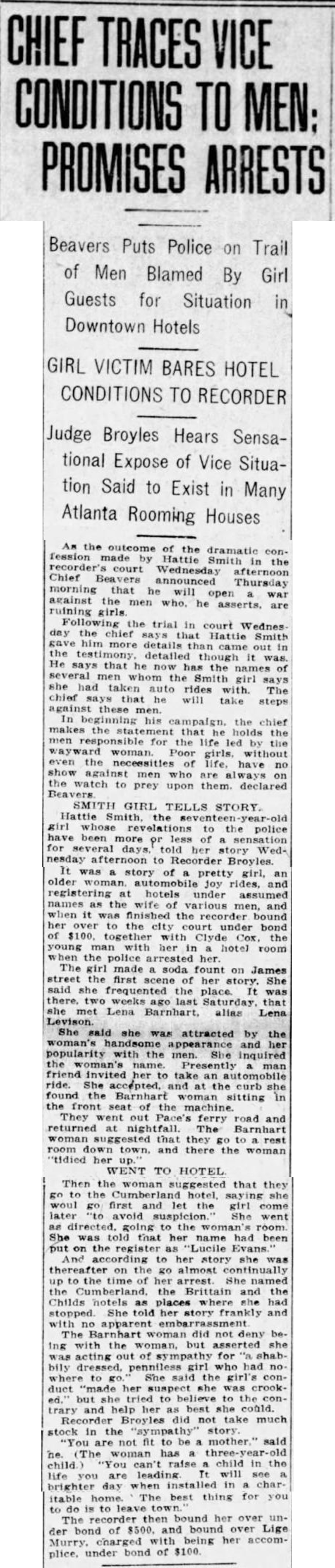 Judge Broyles Hears Sensational Expose of Vice Situation Said to Exist in Many Atlanta Rooming Houses