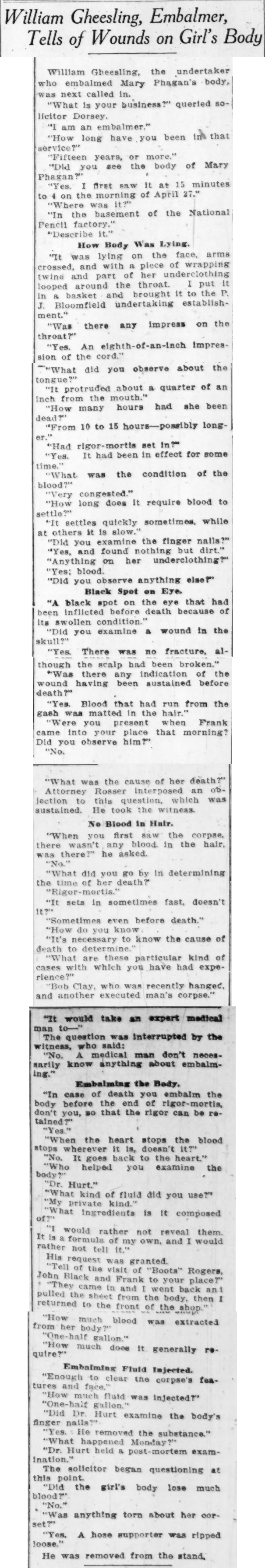 William Gheesling, the undertaker who embalmed Mary Phagan's body, was next called in.