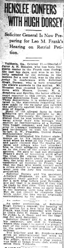 Solicitor Hugh Dorsey, who is here preparing the state's answers
