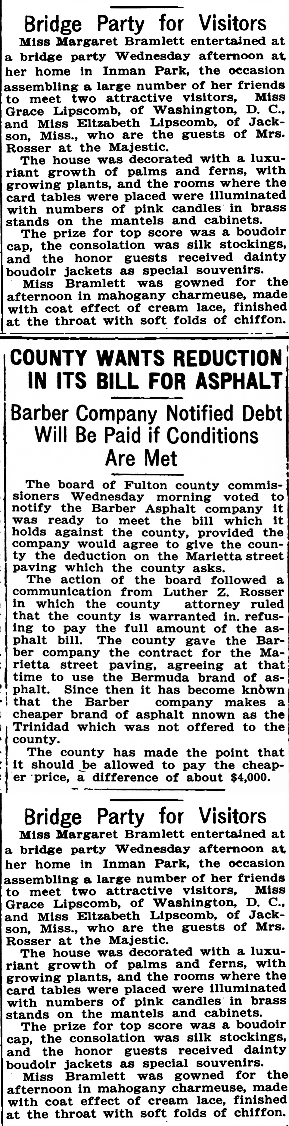 bridge party Wednesday afternoon at her home in Inman Park, the occasion assembling