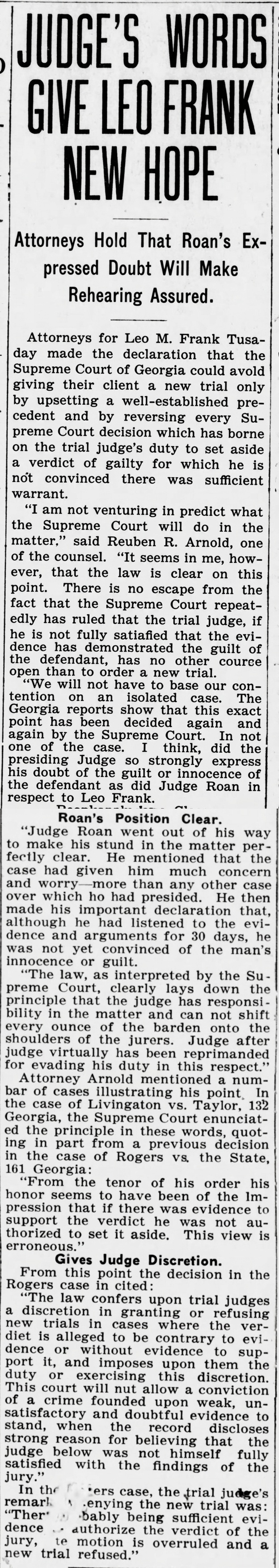 I have read your editorial in Saturday's issue on Judge Roan's remarks in the Frank case with a good deal of interest and some astonishment.