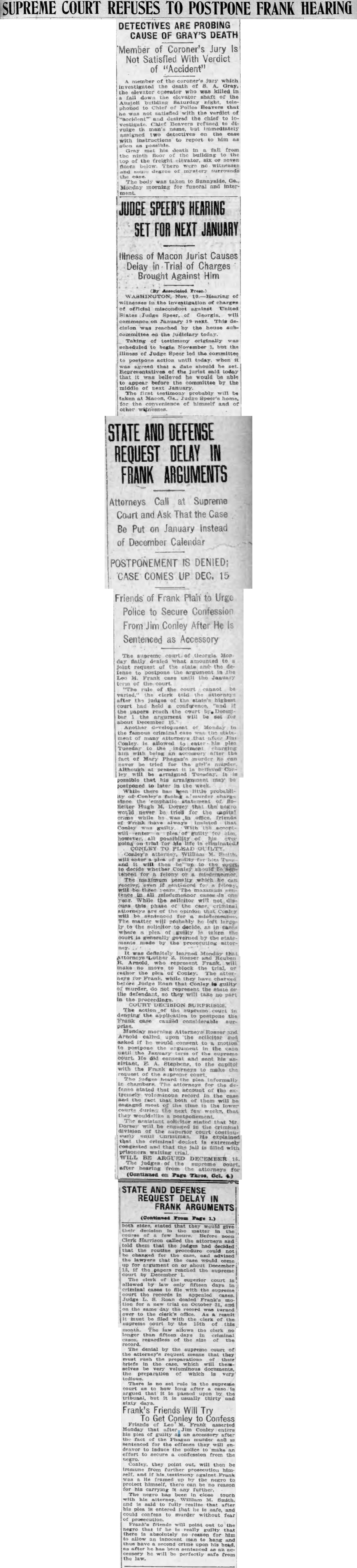scheduled to begin November 1, but the illness of Judge Speer led the committee