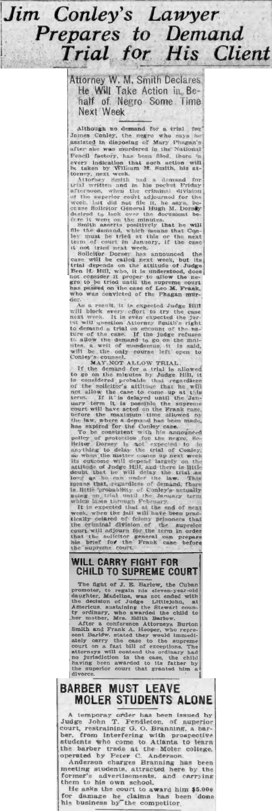 to Atlanta to learn the barber trade at the Moler college, operated by Peter C.