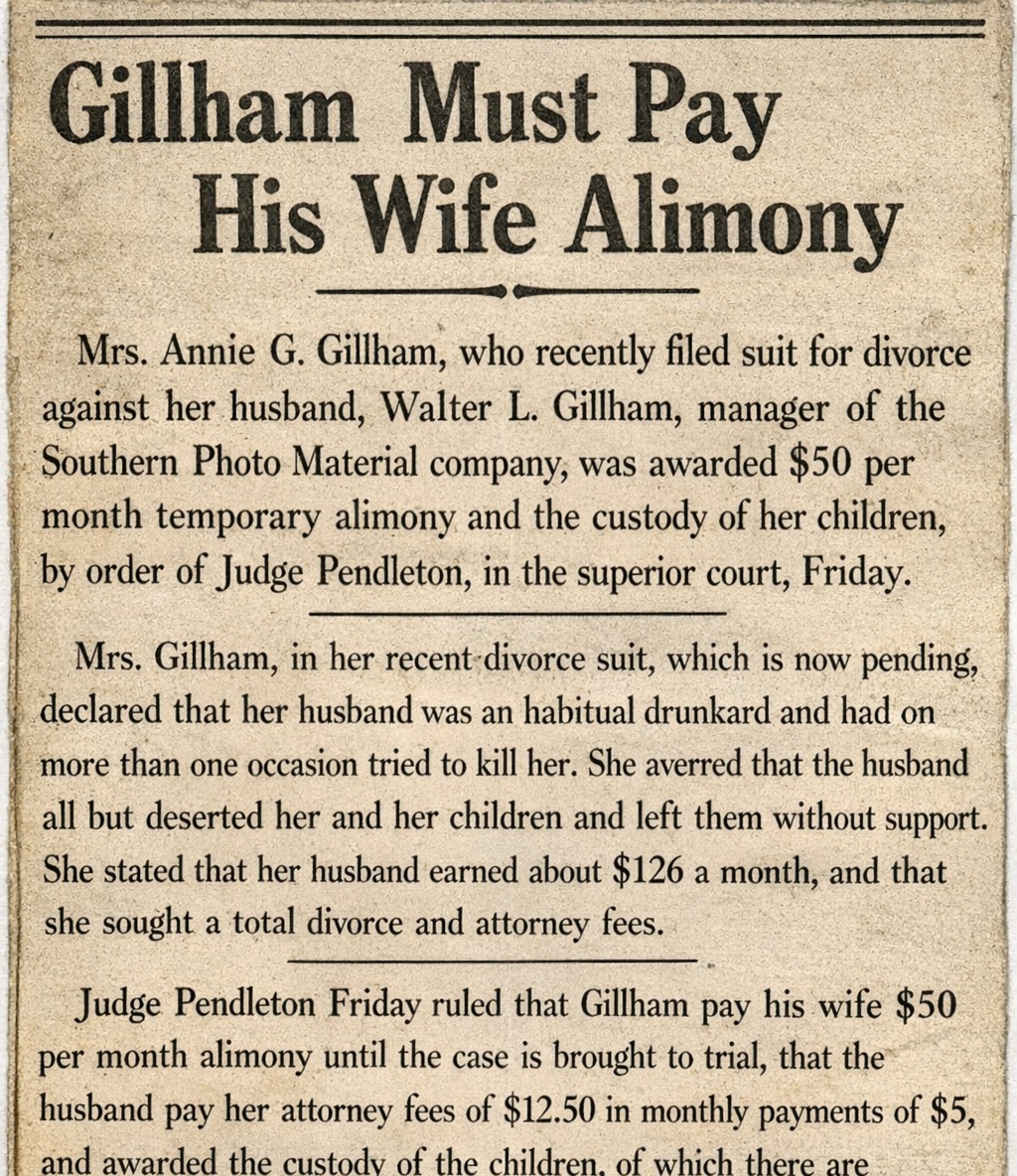 Southern Photo Material company, was awarded $50 per month temporary alimony