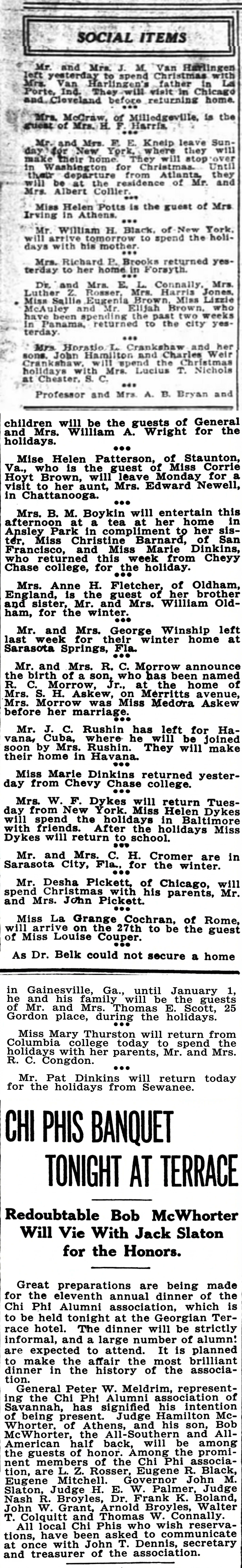 Judge Hamilton Mc Whorter, of Athens, and his son, Bob Mc Whorter, the All-Southern and All-American half back, will be among the guests of honor.