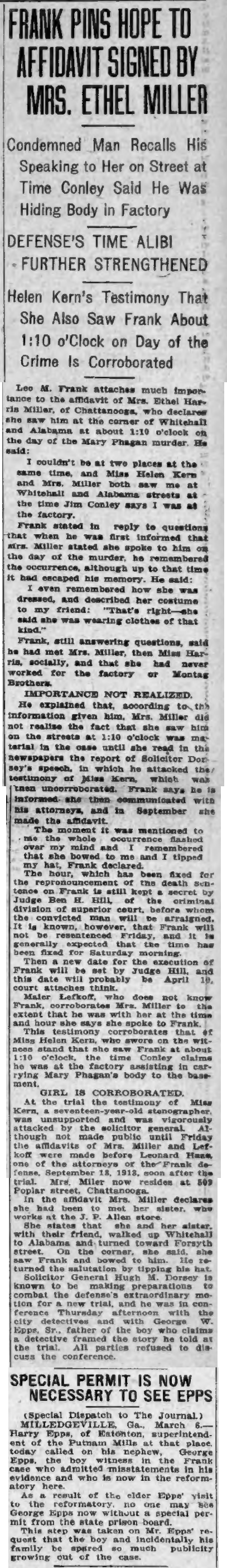 Friday, 6th March 1914: Frank Pins Hope To Affidavit Signed By Mrs. Ethel Miller, The Atlanta Journal PDF