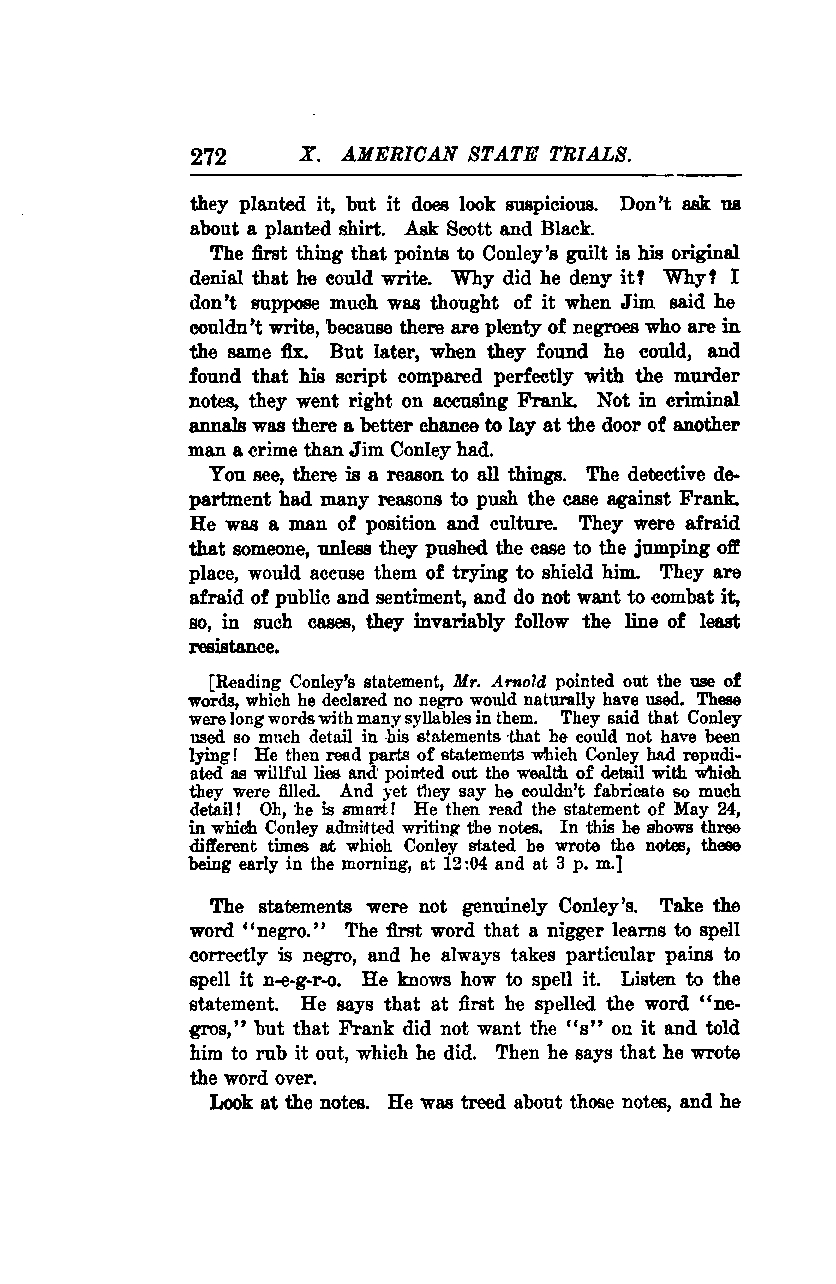 [Reading Conley’s statement, Mr. Arnold pointed out the use of