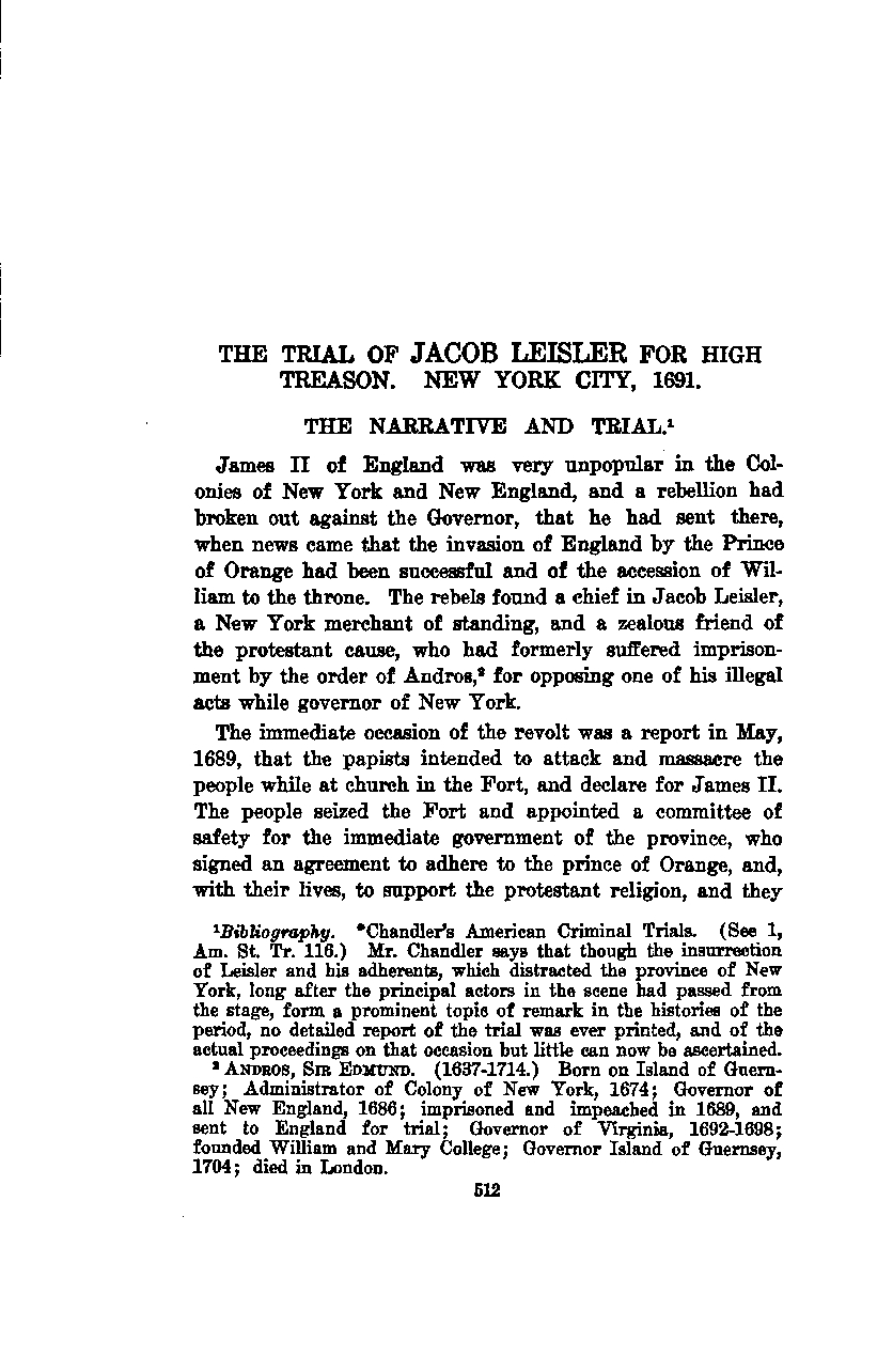 THE TRIAL OF JACOB LEISLER FOR HIGH