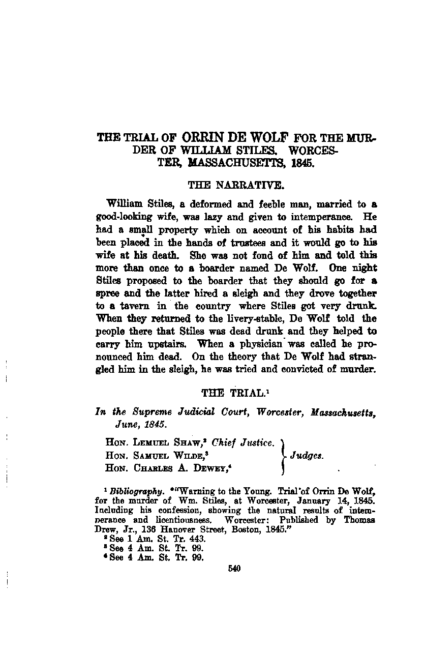 THE TRIAL OF ORRIN DE WOLF FOR THE MUR-