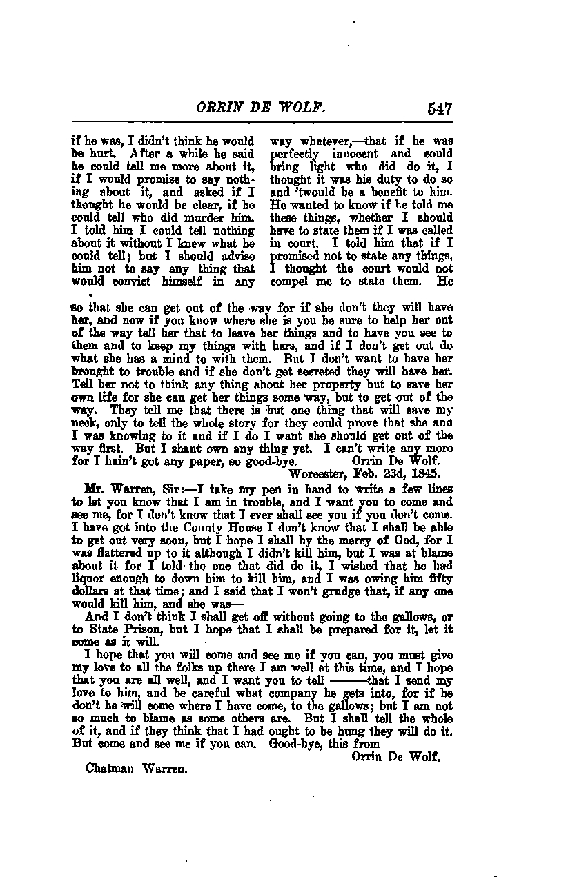 for I hain’ got any paper, eo good-bye, Orrin De Wolf.