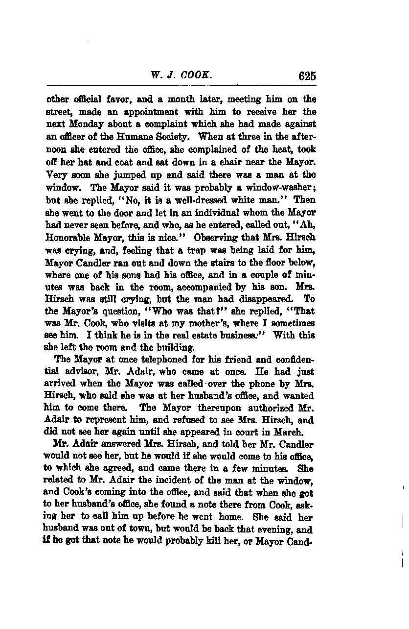 Adair to represent him, and refused to see Mrs. Hirsch, and