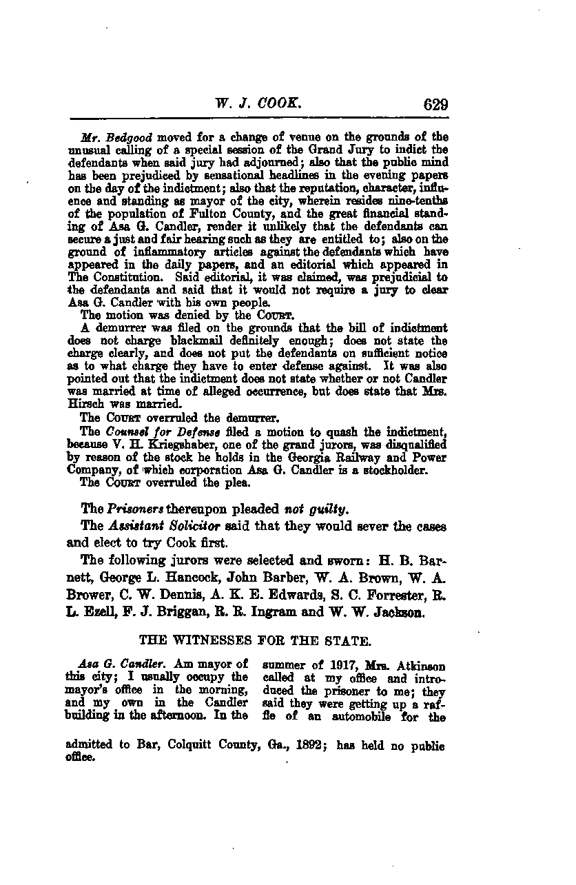 Aaa G. Candler. Am mayor of summer of 1917, Mrs. Atkinson
