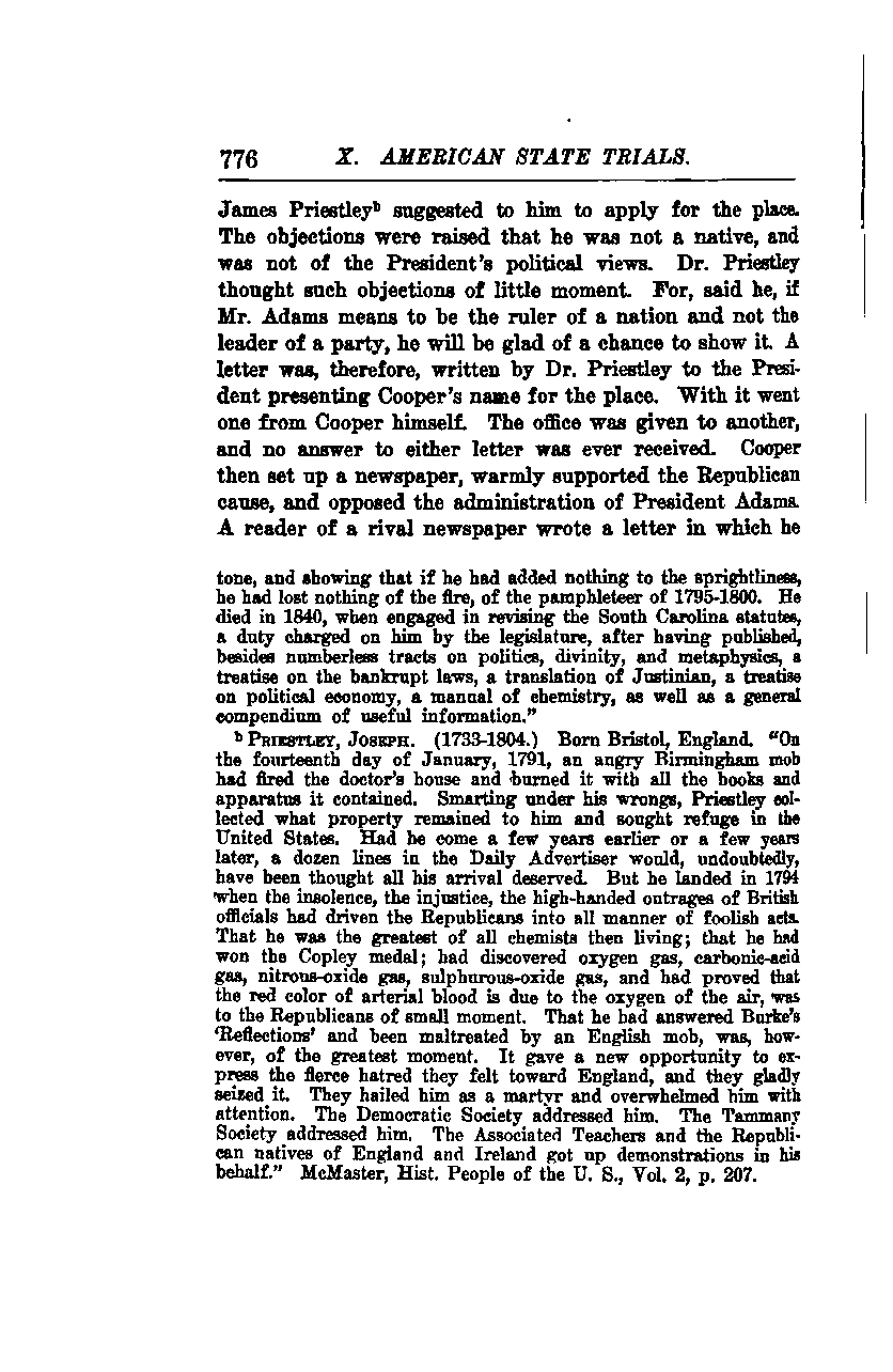 apparatus it contained, Smarting under his wrongs, Priestley eol-