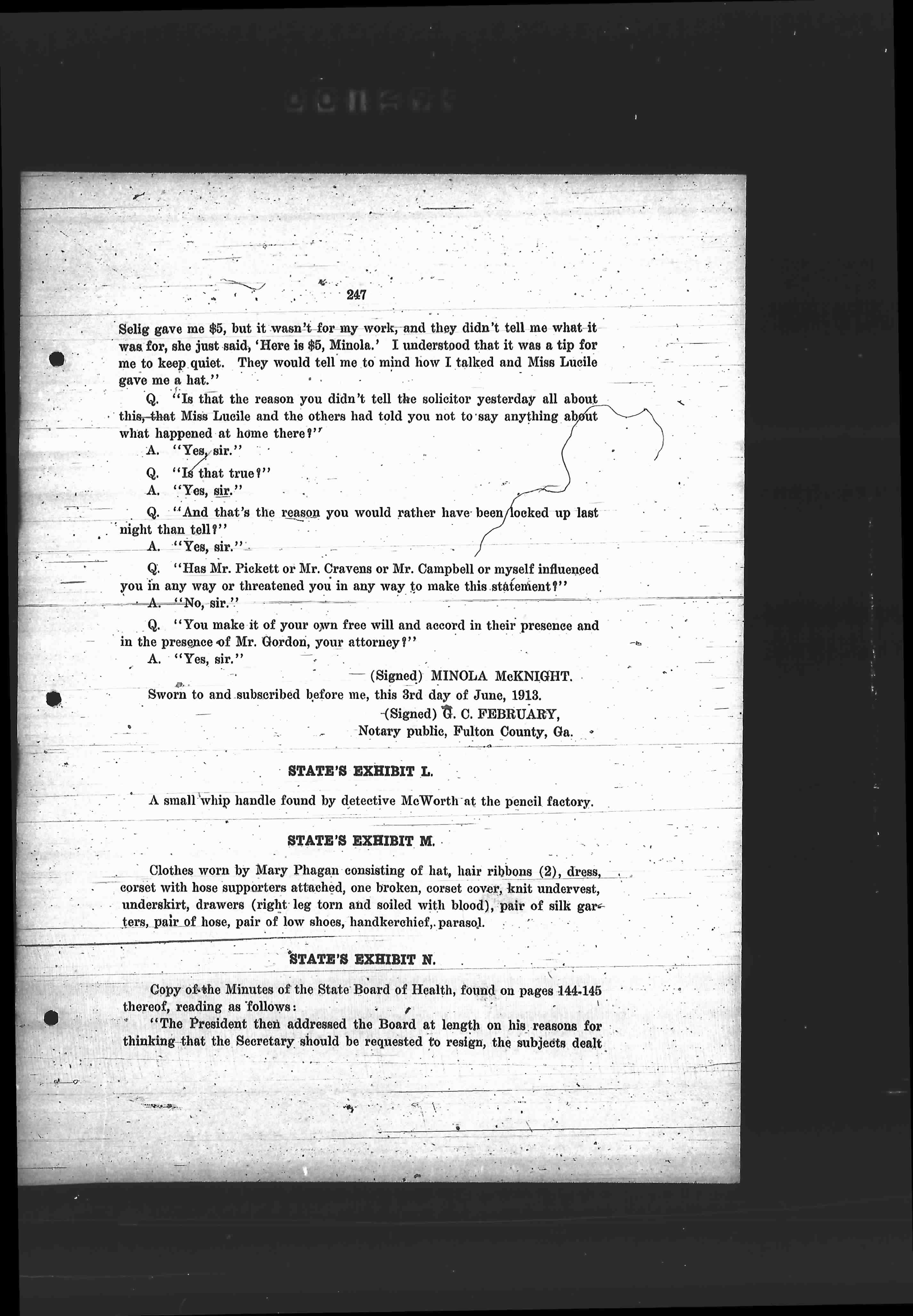Visible Translated Text Is As Follows: DEFENDANT'S EXHIBIT 7—Continued.Three pencil sheets (the last two lines of which are in Frank's handwriting), part of data for financial sheet.FACTORY RECORDNATIONAL PENCIL COMPANY, Atlanta, Ga. Week Ending April 12, 1913PENCIL STOCKDATE 6 Copy…