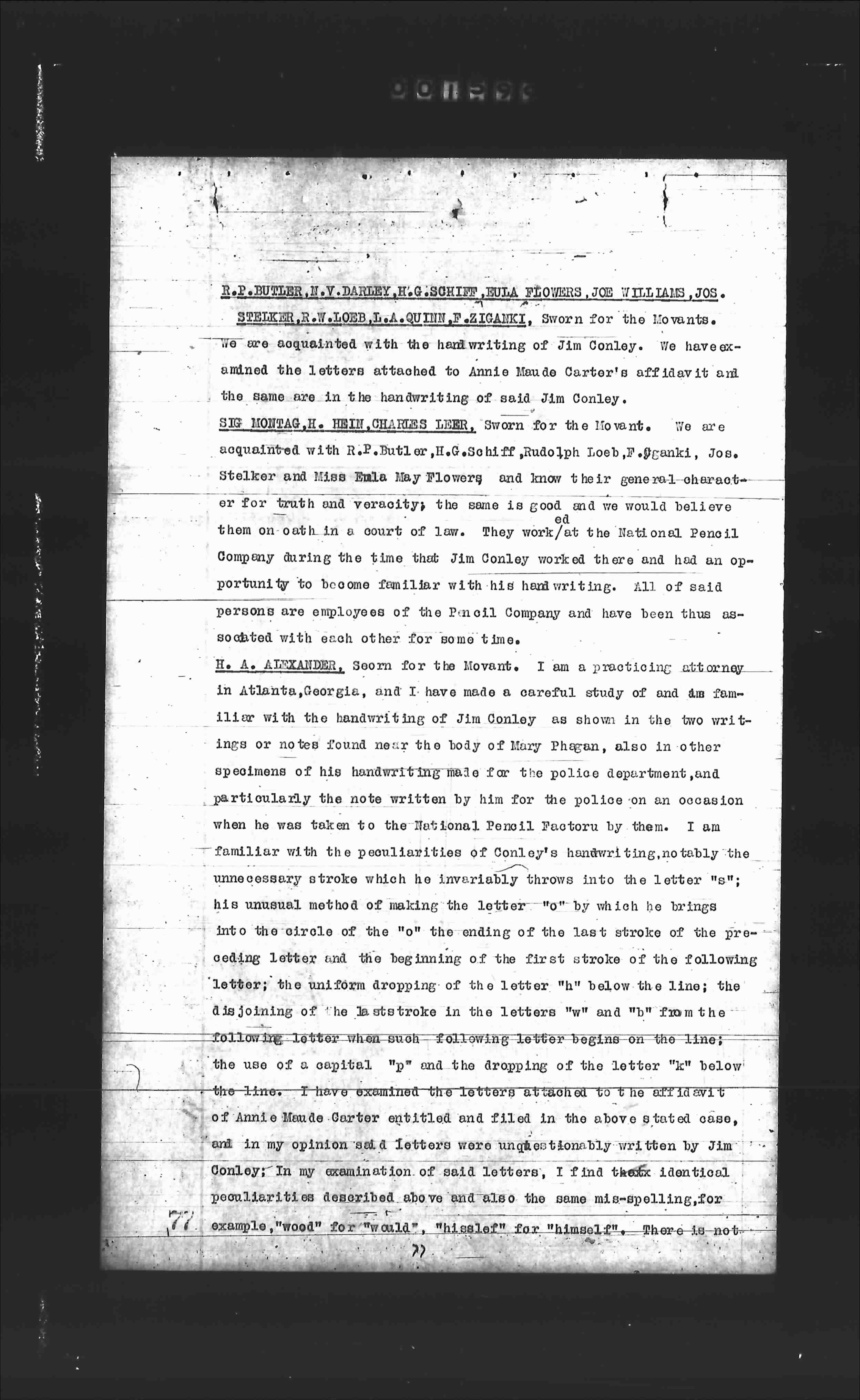 Visible Translated Text Is As Follows: the least doubt in my mind that these letters were written by thesame person who wrote the notes found by the dead body of MaryPhagan.S. M. NETTLEBAUM, Sworn for the Movant.I am a court…