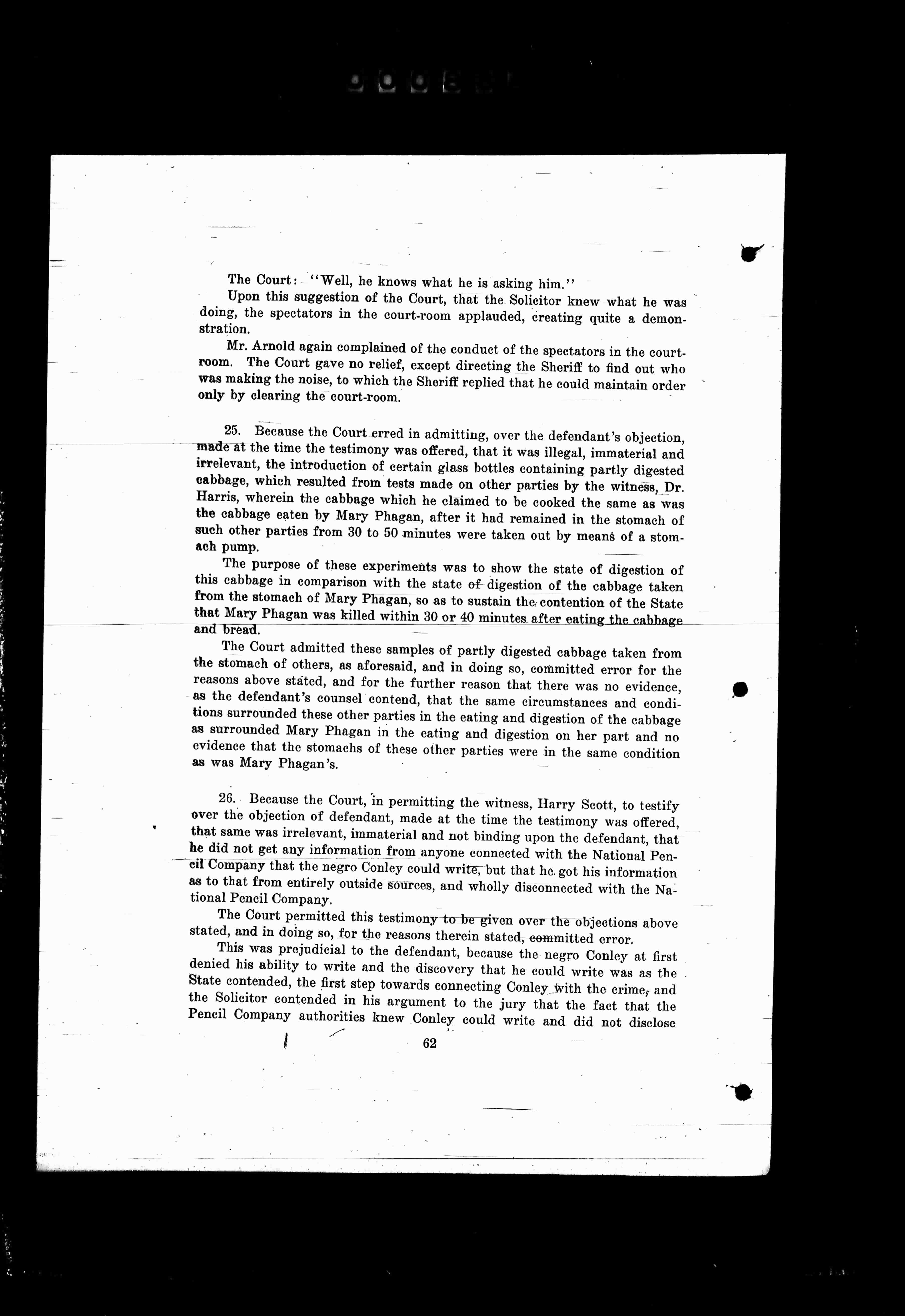 Visible Translated Text Is As Follows: that to the State authorities; was a circumstance going to show the guilt ofFrank.27. Because the Court permitted the witness Harry Scott, to testify overthe objection of defendant's counsel, made while the testimony was…