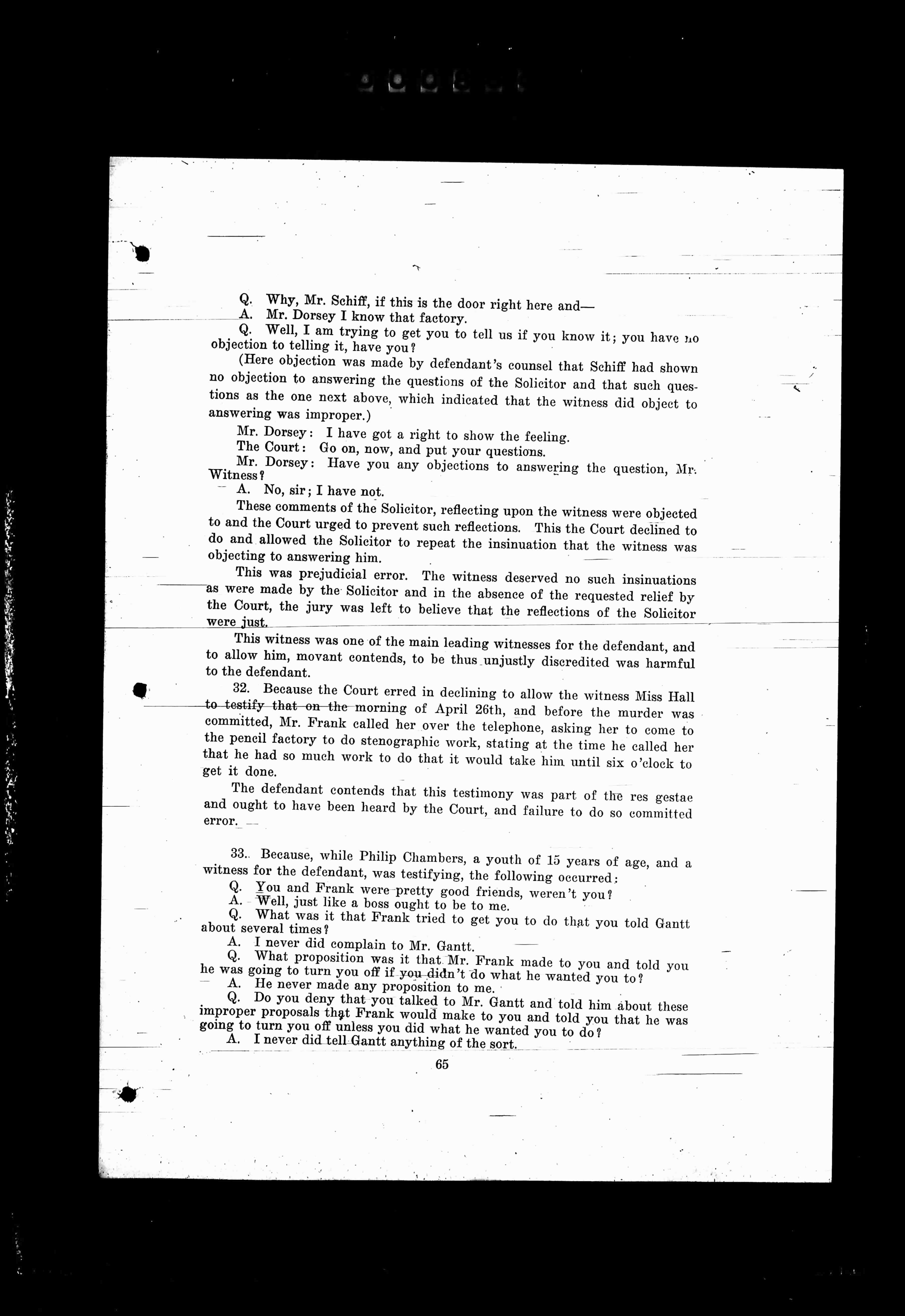 Visible Translated Text Is As Follows: that Frank had committed disagreeable and prejudicial acts with the witness and the final assertion of the solicitor when the Court ruled it out that he would introduce Gantt and let the Court rule…